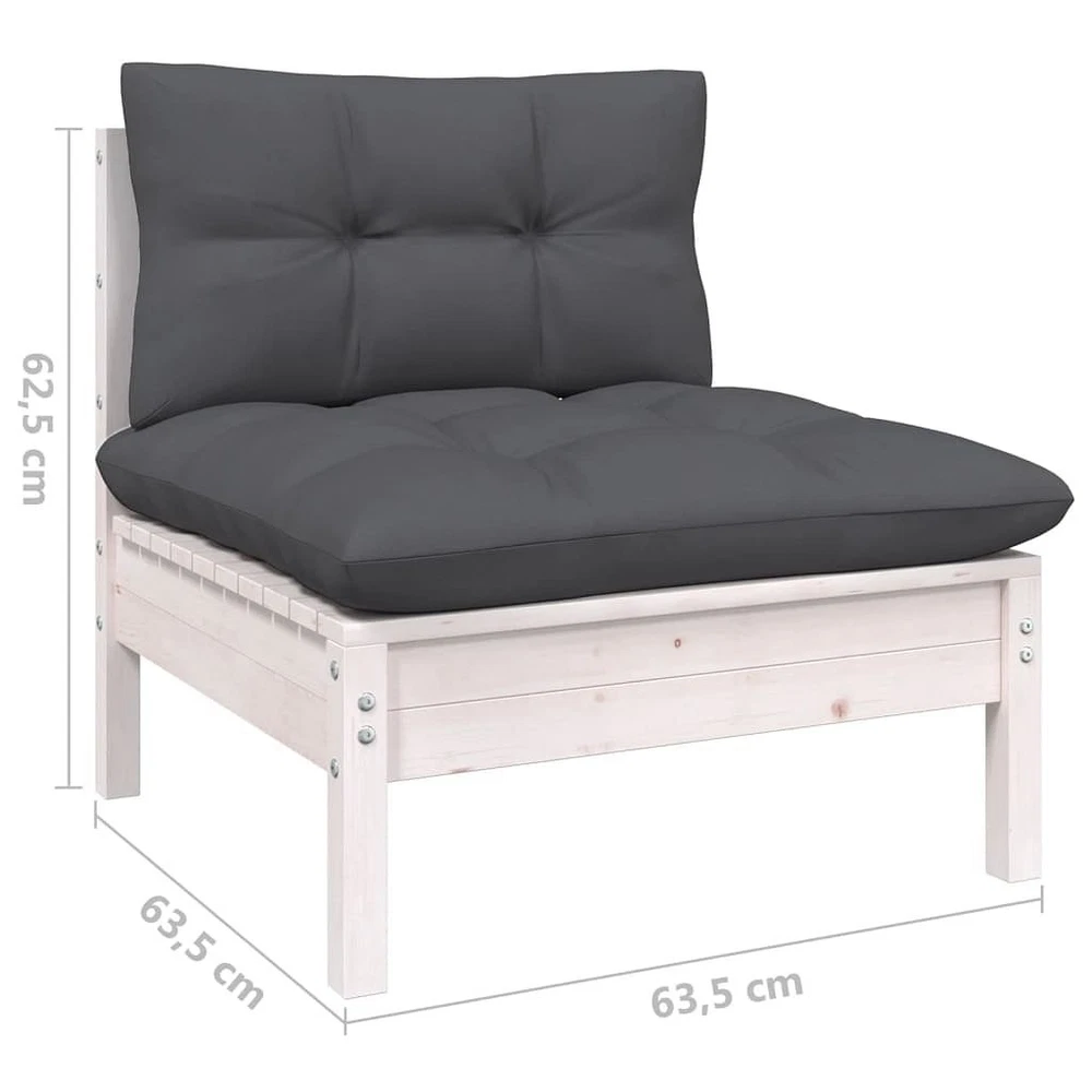 Patio Middle Sofa with Cushions White Solid Pinewood