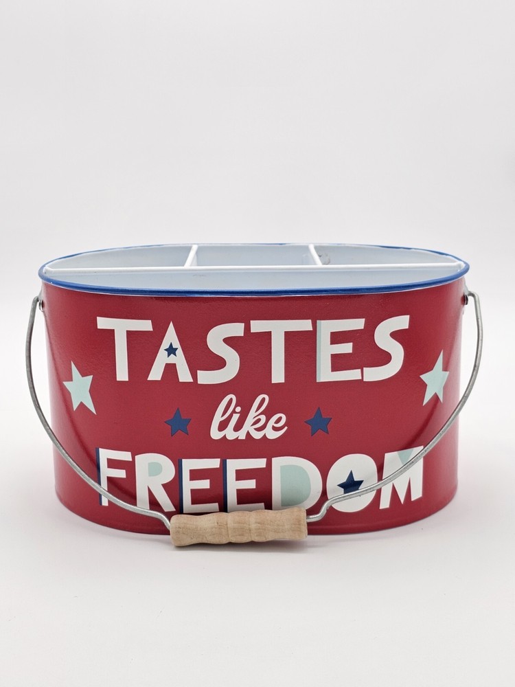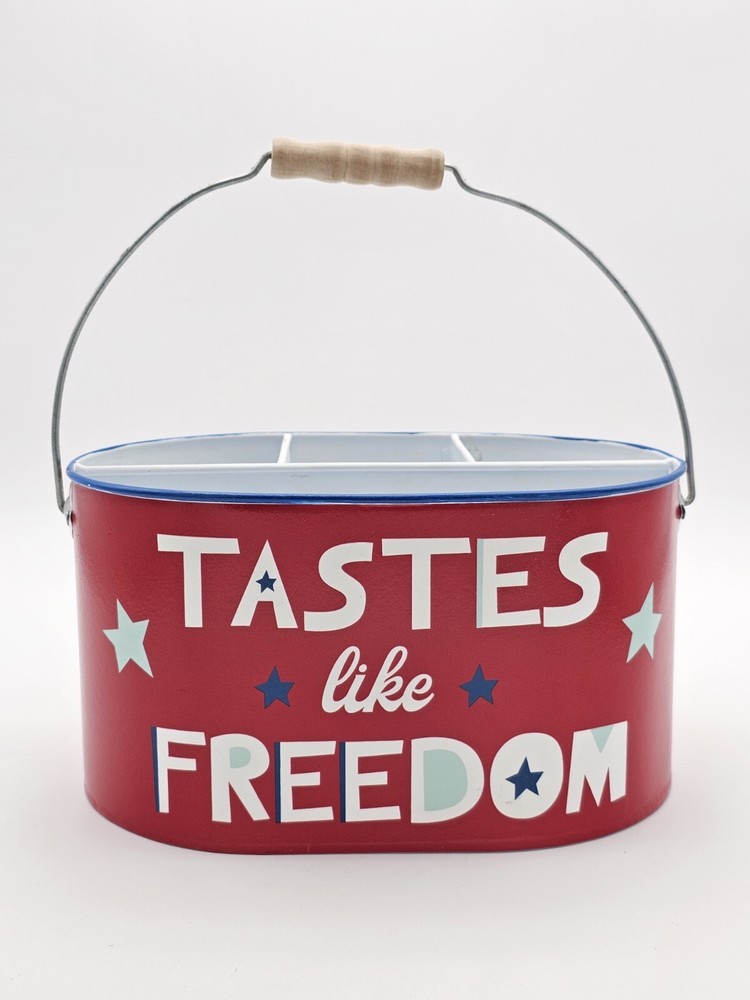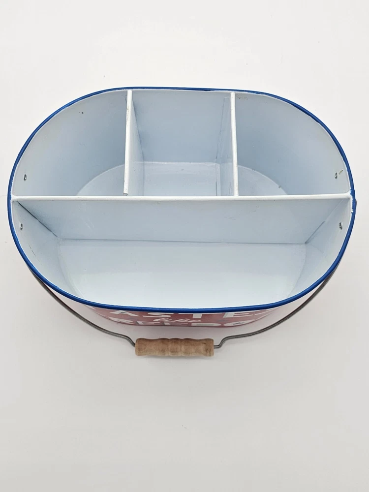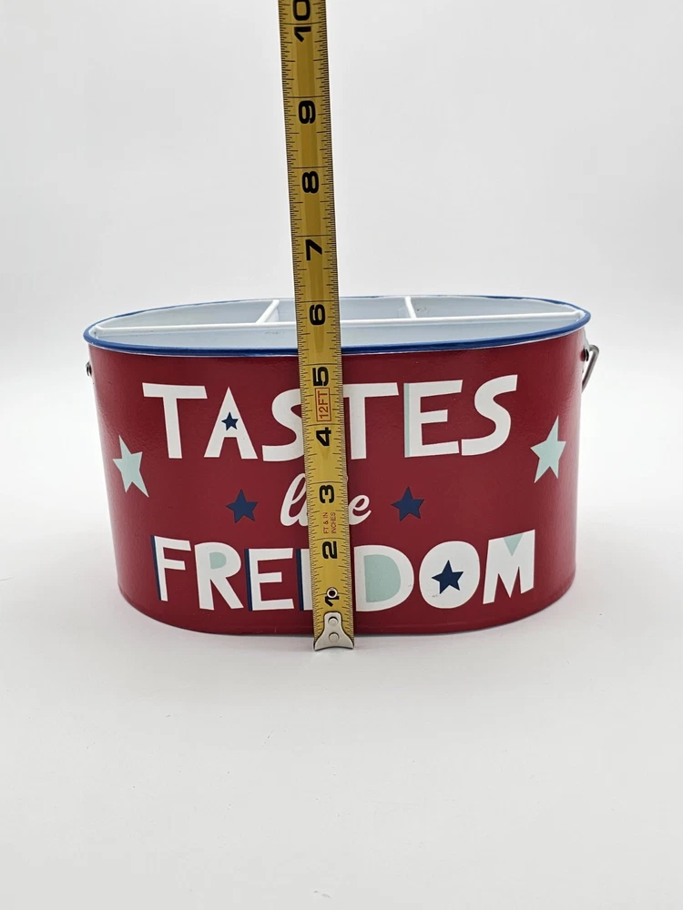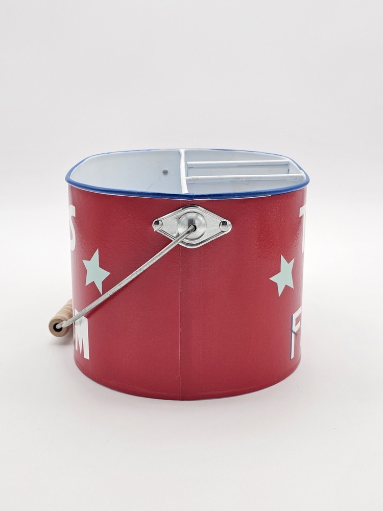 The handle leans a bit to one side. This is shown in the pictures. This 4th of July metal storage bin is perfect for those who want to add a touch of patriotism to their home decor. The bin features a metallic finish and is colored red, with stars adorning the design. Measuring 9.75 inches in length, 6.75 inches in width, and 5.5 inches in height, this storage bin is ideal for storing various items. Made from high-quality metal, this storage bin is durable and sturdy. The bin is perfect for those who want to keep their items safe and organized. Whether you're using it to store clothes, documents, or other items, this storage bin is sure to add a touch of elegance to your home. This is to be considered in acceptable condition with wear including scuffs, marks, nicks, tarnishing, discoloring, stains, dings, etc. These are used and are NOT mint. If any of this is unacceptable to you, please do NOT purchase this. Please review the photos/listing again before purchasing. This would make an amazing gift or addition to a collection and at an amazing price!!! Be sure to check out my eBay store! I have thousands of eclectic and cool collectibles, all at amazingly low prices!!! PLEASE READ: Please be aware that most of our items come from estate sales and other secondary owners. This means that the item(s) might have been exposed to smoke/pets/etc. Please take this in to consideration before bidding. We've done our best to include as many pics as possible to show the item's condition. Again, all items are sold as is. If an item states: "Sold for parts/Non Working/As-is", it means just that. SHIPPING: Please confirm that your address is correct. I will only ship to the address that is associated with your paypal/ebay account. Buyer pays all shipping costs unless "Free Shipping" is offered. After receiving cleared payment I will ship within three business days, holidays and weekends excluded. I pack all items as securely and safely as possible. I sometimes use recycled materials including cardboard boxes, bubble wrap and/or styrofoam packing peanuts. FEEDBACK: Your feedback is important to us. If your business with us is satisfactory, please leave a positive and we will do the same for you. Should there be any problems with this transaction please contact us and we will do our very best to correct them. RETURNS: Are accepted unless otherwise noted. Lastly, thank you for looking at my listing and have a great day!!!!!