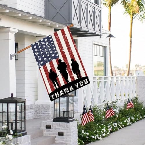 Return Policy Fast Delivery Trusted seller Patriotic American Soldier Thank You House Flag 28x40 Inch Burlap Double Sided 4th of July Independence Day Memorial Day Yard Outdoor Decor USA Flags DF454-28 Product Description PACKAGE :ONLY 1PC PATRIOTIC DAY HOUSE FLAG (flagpole is not included). house flag size (28 x 40"), sleeve hanger fits standard flagpole. DOUBLE SIDED: Design is double sided with the image printed and visible from both sides and text also reads correctly from both sides. PREMIUM QUALITY MATERIAL: Made of premium quality burlap looking machine washable Spun Polyester, which is weather resistant as well as UV / fade-resistant. High-strength double stitching ensures durability. Wide Application: Welcome guests to your home with this unique, seasonal flag. Perfect for any deck, patio, porch or veranda and make charming decorative statements for any backyard, lawn or garden. RISK FREE GUARANTEE: Each flag brightly colored, fade resistant, extra soft and extra durable for lasting enjoyment. AND we offer 60 days money-back warranty and 24/7 customer support give you the best shopping experience ever. Shipping Returns Payment Shipping Shipping is FREE to all addresses other than APO/PO boxes in the lower 48 states. All our stock ships from US-based warehouses. Shipped via USPS or UPS (depending on location and package weight) Unless stated otherwise, all orders will ship within 24-72 hours of your payment being processed. Check our feedback to see the great reviews of FAST shipping we offer. Returns Seller does not accept returns Payment We currently accept payment via eBay managed payments only. Once payment is cleared, we will dispatch your shipment within 1-3 business days. Please refer to the "Shipping" tab for more information regarding shipping speed to your destination.