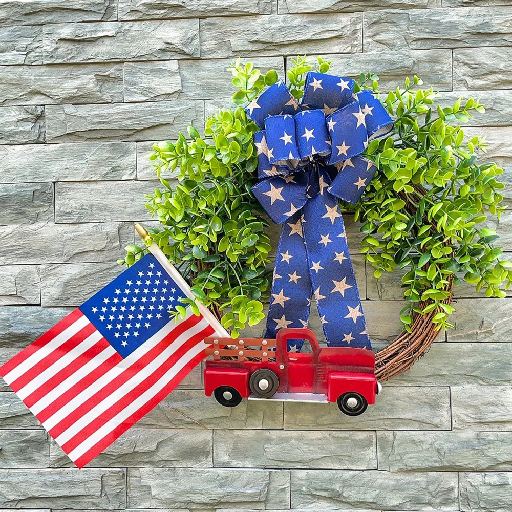 This festive wreath is absolutely stunning! The vibrant red, white, and blue colors pop, and the added flag, truck sign, and bow give it such a patriotic flair. It’s well-made with durable polyester and plastic, so it’ll last for many Fourth of July celebrations. Perfect for sprucing up your front door, fireplace, or office—definitely a must-have for the holiday!
