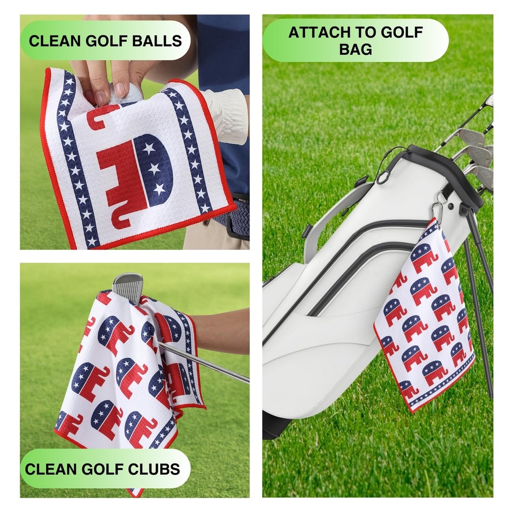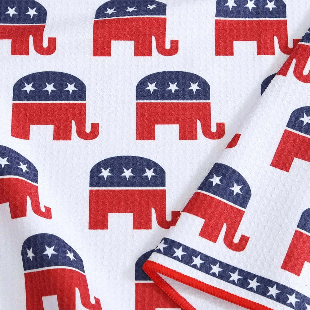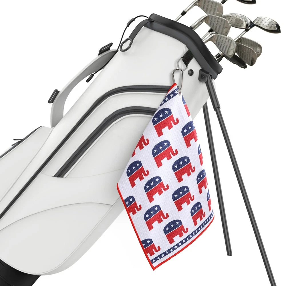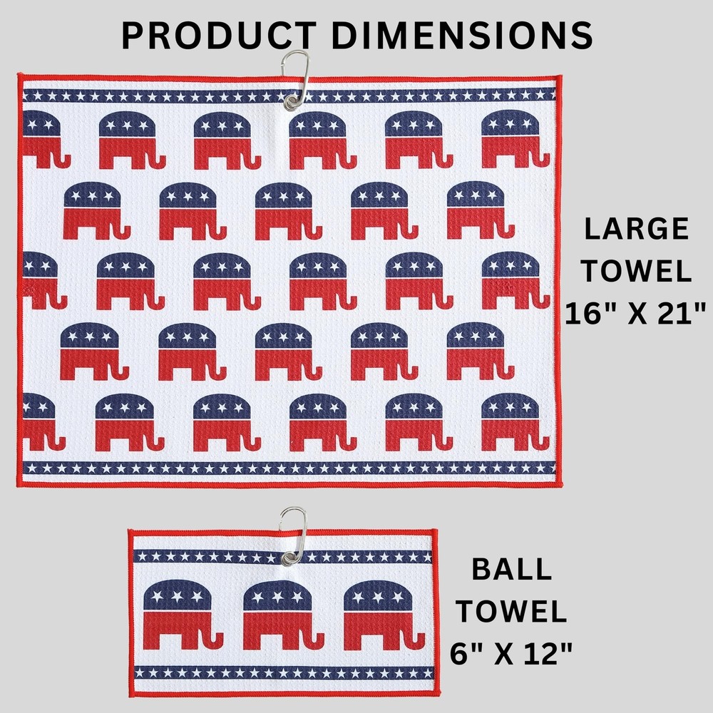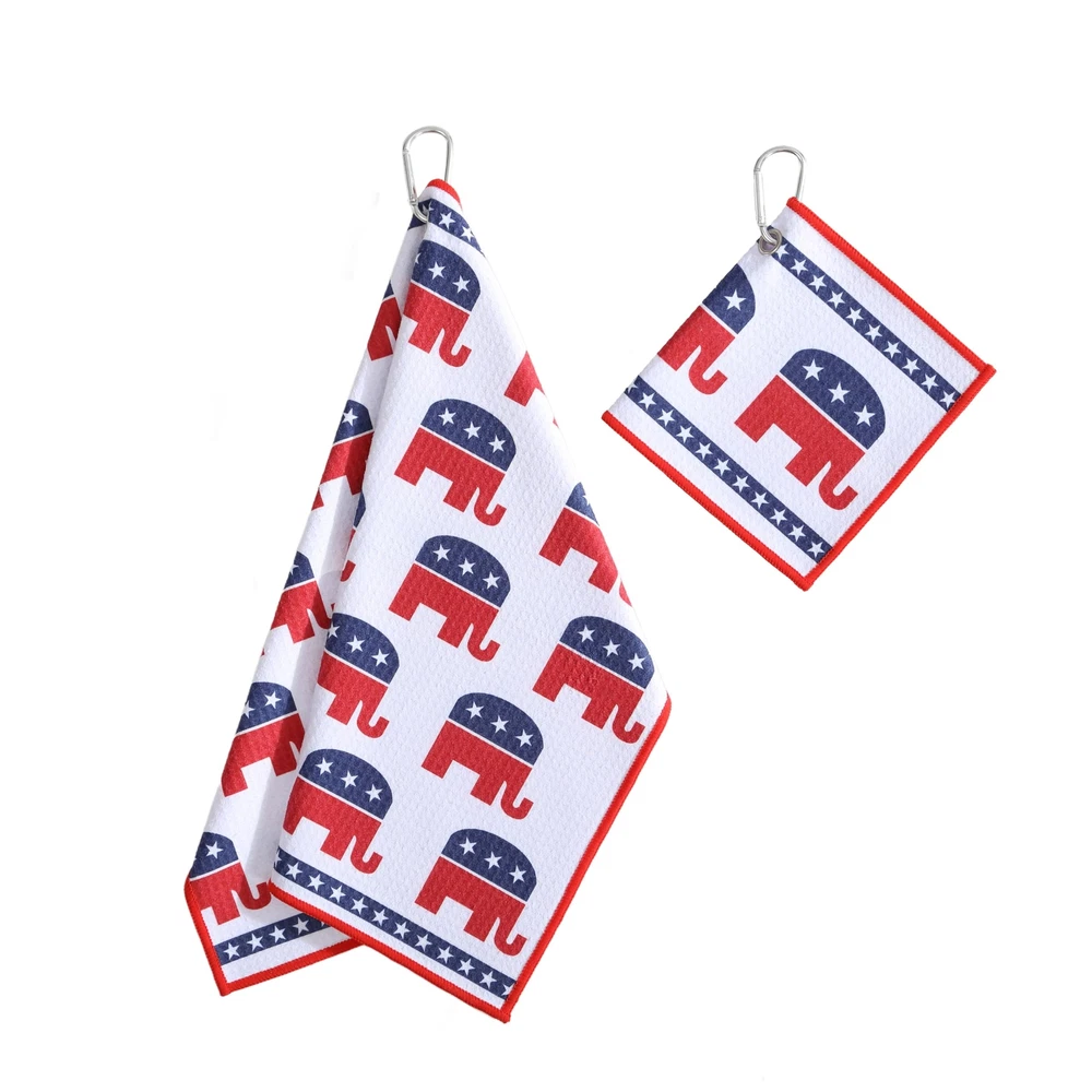 Patriotic GOP Elephant Golf Towel Set 2 Pack with Clip Microfiber
