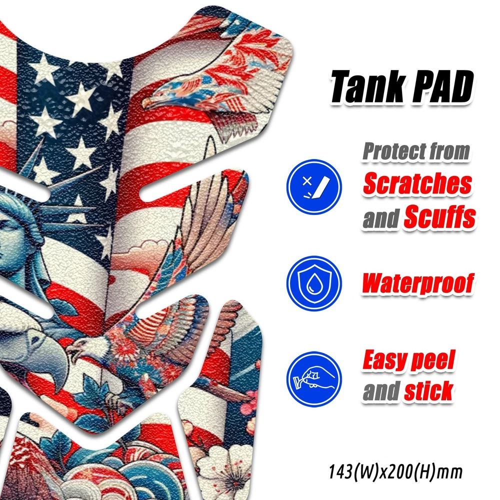 Show off your patriotic pride with this stunning motorcycle tank pad featuring bold American imagery, including the majestic eagle and the iconic Statue of Liberty, against a backdrop of the USA flag. The intricate design not only enhances your motorcycle's appearance but also provides a protective, antislip surface to safeguard your gas tank from scratches and wear. Made of high-quality, durable materials, this tank pad is built to last and resist fading, ensuring your ride looks great for miles to come. Perfect for any motorcycling enthusiast who wants to display their American spirit! MC Motoparts Shield Tank Pad #111 Our Tank Pad is one of the first simple accessories that can purchase for decorating your bikes Patriotic Motorcycle Tank Pad Antislip Gas Tank Protector SHIELD Show off your patriotic pride with this stunning motorcycle tank pad featuring bold American imagery, including the majestic eagle and the iconic Statue of Liberty, against a backdrop of the USA flag. The intricate design not only enhances your motorcycle's appearance but also provides a protective, antislip surface to safeguard your gas tank from scratches and wear. Made of high-quality, durable materials, this tank pad is built to last and resist fading, ensuring your ride looks great for miles to come. Perfect for any motorcycling enthusiast who wants to display their American spirit! MC Motoparts Shield Tank Pad #111 Our Tank Pad is one of the first simple accessories that can purchase for decorating your bikes MC Motoparts Tank Pads are made by high quality vinyl laminated by anti-slip texture plastic protective layer Pattern design Protect your motorcycle tank from scratches and scuffs from your belt buckle, zipper, etc. Provide enhanced grip for riders Provide paint protection Partly transparent High quality printing, color won't goes off Made from high quality material Easy peel and stick installation Universal Fit Packing with instruction Removable and no marks remain after remove Dimensions (W x H): 140 x 198 mm ( at widest point ) Made in Hong Kong Quantity: 1 piece Item Specifics Brand MC Motoparts Type Tank Pad Manufacturer Part Number EAZYTPMC1113449469MOTOSU001 Color Multicolor Warranty No Warranty Number of Pieces 1 Modified Item No Unit Type Unit Country/Region of Manufacture Hong Kong Style Shield Tank Pad Dimensions 140 x 198 mm (W x H) Payment We only accept Payment through PayPal system. * Non-Paying bidders will be reported. * No other payment method will be acceptable. * Payment must be made within 7 days. Shipping International Taxes & Duty fees: We will mark "Gifts" on custom forms. Buyers are fully responsible for any international taxes & duty fees, which may be charged upon delivery. Shipping Time: USA, UK, Canada, Australia & Singapore need around 7-18 WORKING Days. France, Germany, Italy, Spain, Eastern Europe, South America & other countries need around 2-4 weeks. Returns 100% Satisfaction Guarantee / Money Back Guarantee We offer a 30 days money back guarantee. We will take back any products which you are not completely satisfied within 7 days from the date of your delivery. All returned products must be in new, re-salable condition and include original packaging. All manuals, registration cards and accessories must be included. We will promptly refund your purchase price. Shipping cost is not refundable. Customer pays all return shipping. If you want to exchange an item for another item (such as different size or color), buyer must cover the shipping fees. Contact Us Please ask us a question using the CONTACT SELLER link above and please include the item # that you are inquiring about. Email takes longer to be answered. DESCRIPTION PAYMENT SHIPPING RETURN POLICY CONTACT US Patriotic Motorcycle Tank Pad Antislip Gas Tank Protector SHIELD Show off your patriotic pride with this stunning motorcycle tank pad featuring bold American imagery, including the majestic eagle and the iconic Statue of Liberty, against a backdrop of the USA flag. The intricate design not only enhances your motorcycle's appearance but also provides a protective, antislip surface to safeguard your gas tank from scratches and wear. Made of high-quality, durable materials, this tank pad is built to last and resist fading, ensuring your ride looks great for miles to come. Perfect for any motorcycling enthusiast who wants to display their American spirit! MC Motoparts Shield Tank Pad #111 Our Tank Pad is one of the first simple accessories that can purchase for decorating your bikes MC Motoparts Tank Pads are made by high quality vinyl laminated by anti-slip texture plastic protective layer Pattern design Protect your motorcycle tank from scratches and scuffs from your belt buckle, zipper, etc. Provide enhanced grip for riders Provide paint protection Partly transparent High quality printing, color won't goes off Made from high quality material Easy peel and stick installation Universal Fit Packing with instruction Removable and no marks remain after remove Dimensions (W x H): 140 x 198 mm ( at widest point ) Made in Hong Kong Quantity: 1 piece Item Specifics Brand : MC Motoparts Type : Tank Pad Manufacturer Part Number : EAZYTPMC1113449469MOTOSU001 Color : Multicolor Warranty : No Warranty Number of Pieces : 1 Modified Item : No Unit Type : Unit Country/Region of Manufacture : Hong Kong Style : Shield Tank Pad Dimensions : 140 x 198 mm (W x H) Payment Shipping Returns Contact Us We only accept Payment through PayPal system. * Non-Paying bidders will be reported. * No other payment method will be acceptable. * Payment must be made within 7 days. International Taxes & Duty fees: We will mark "Gifts" on custom forms. Buyers are fully responsible for any international taxes & duty fees, which may be charged upon delivery. Shipping Time: USA, UK, Canada, Australia & Singapore need around 7-18 WORKING Days. France, Germany, Italy, Spain, Eastern Europe, South America & other countries need around 2-4 weeks. 100% Satisfac