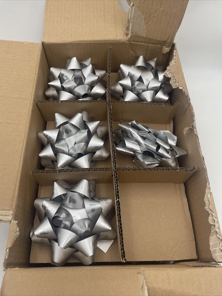 Add a touch of class to your gift wrapping with these beautiful silver bows. This lot of 17 bows is perfect for any occasion, from Christmas to birthdays. Featuring the iconic Patron Tequila brand, these bows are sure to impress. Each bow is made with high-quality materials and is easy to attach to any gift. The silver color adds a touch of elegance to your gift, making it stand out from the rest. These bows are a great addition to any gift wrapping supplies collection and are perfect for anyone who wants to add a little extra flair to their presents. New!