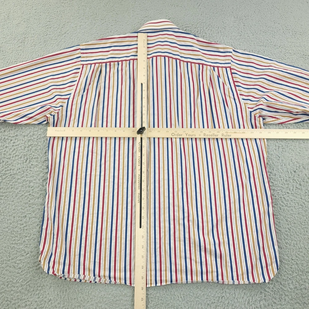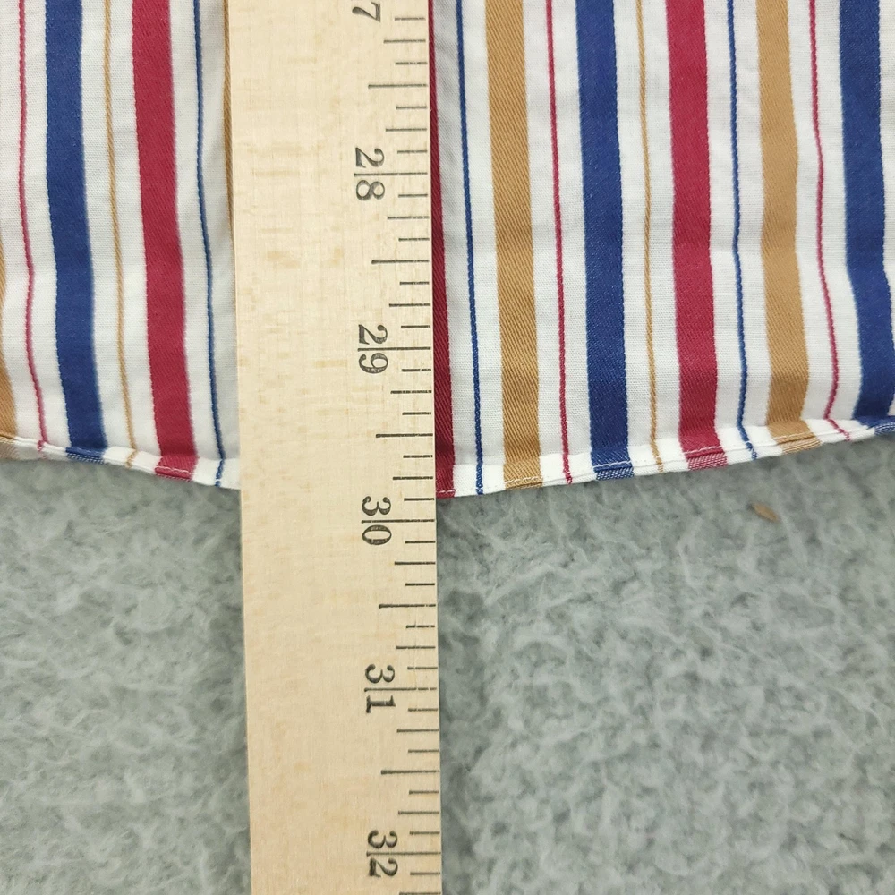 John Ashford Dress Shirt Mens Size M Red Yellow Blue White Stripes IN STOCK