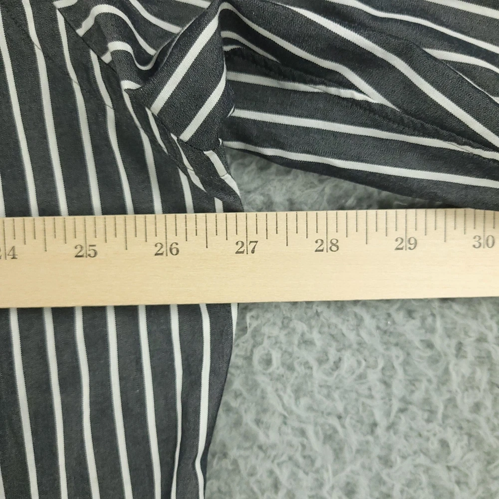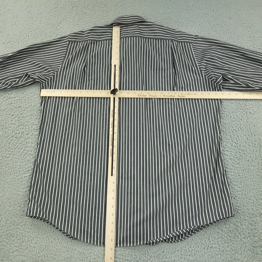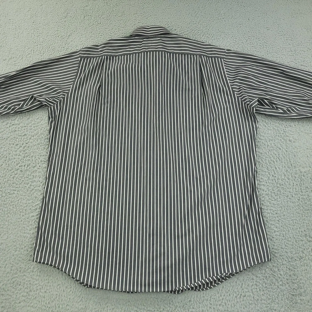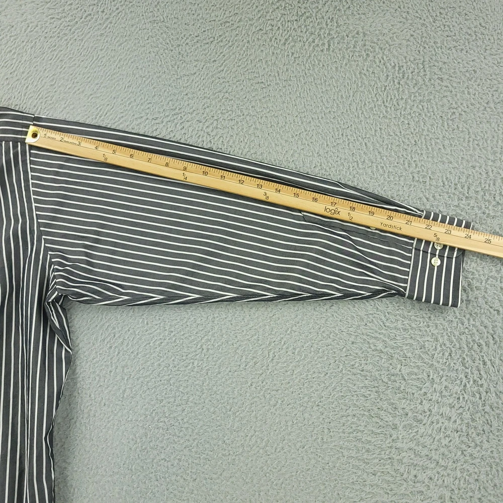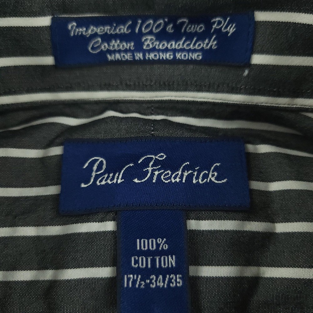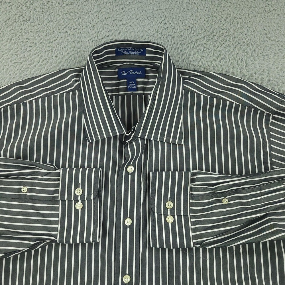 Paul Fredrick Dress Shirt Mens 17.5 34/35 Gray Stripe Cotton Point Collar Pocket Brand: Paul Fredrick Style: Mens long sleeve button-front dress shirt with point collar and single chest pocket. Color: Gray with vertical white stripe pattern. Tag size: 17.5 inch neck, 34/35 sleeve. Material: 100% cotton; labeled "Imperial 100's Two Ply Cotton Broadcloth"; made in Hong Kong. Details: Barrel cuffs with two buttons, curved shirttail hem, back shoulder pleats, collared neckline. Measurements are included in the photos, compare measurements with your item to ensure proper fit. Items are added daily click here to Visit My Store Combined shipping for US customers is 1.99 for each additional item Items are cleaned per eBay standards & policies