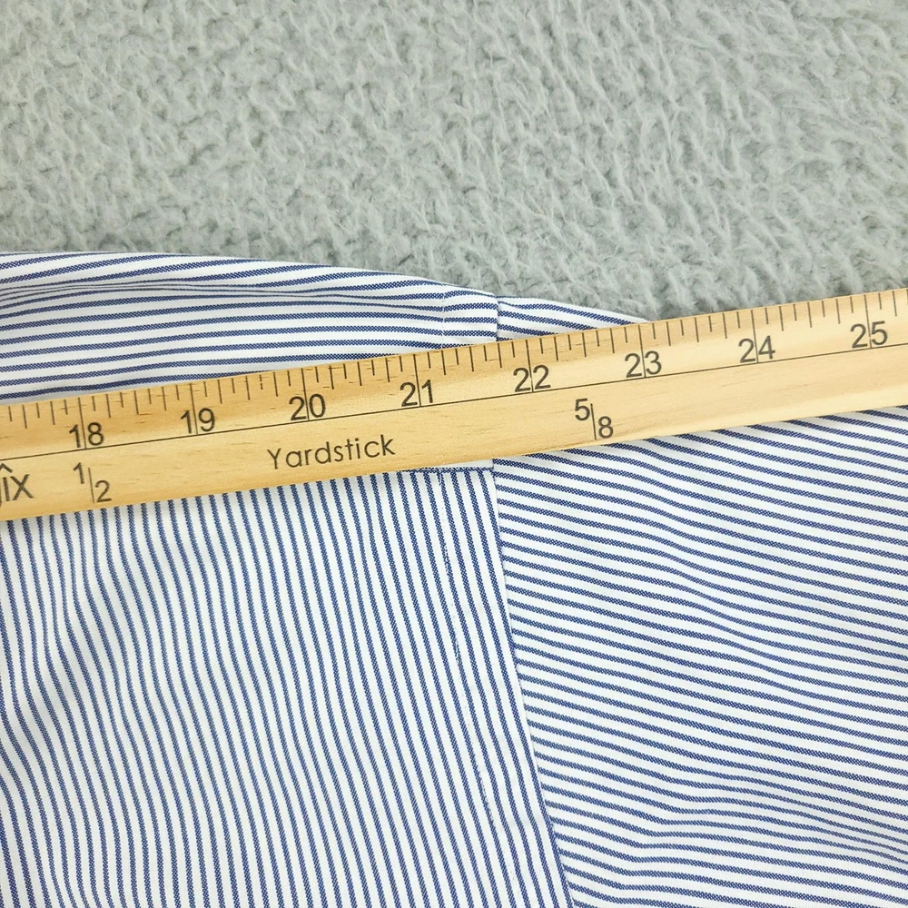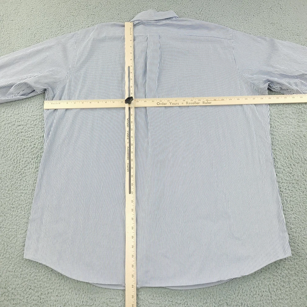 Brand: Paul Fredrick Style: Mens long sleeve button down dress shirt with blue and white vertical stripe pattern. Color: Blue and white stripes Material: 100% cotton; Finest two ply cotton pinpoint per tag. Made in China. Size on tag: 18 1/2 - 35 Details: Button-down collar, full front button closure, single chest pocket, rounded shirttail hem, barrel cuffs with button closure, back yoke with center box pleat, classic business dress styling. Washed and dried with Fragrance Free Detergent & Dryer Sheets. Measurements are included in the photos, compare measurements with your item to ensure proper fit. (Measurements are done with the item lying flat). I ship next business day and all items include tracking. Items are added daily to my store Visit My Store Buy More & Save! Combined shipping for US customers - $1.99 for each additional item (Add items to shopping cart and discounts will automatically calculate during checkout)