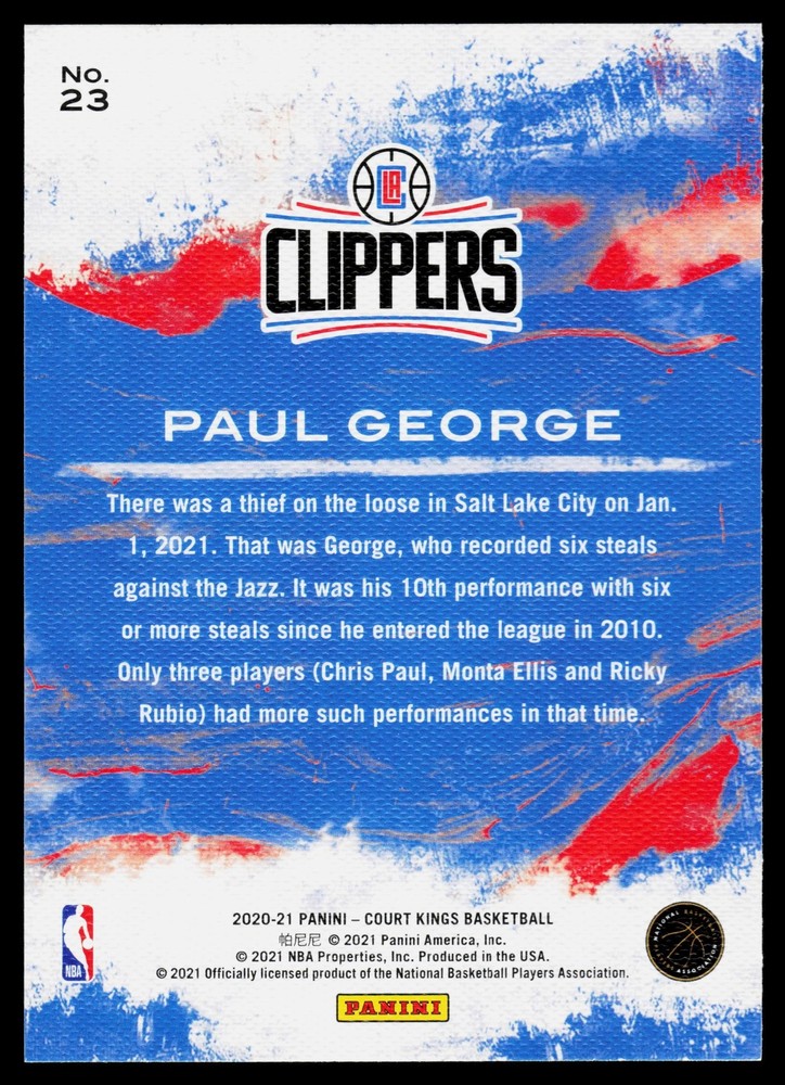 You will receive a Near Mint or Better, Paul George, 2020-21 Court Kings, , Los Angeles Clippers card PLEASE NOTE: SOME CARDS THAT GO THROUGH OUR SCANNER MAY APPEAR TO HAVE LINES THROUGH THEM. THEY ARE NOT ACTUAL SCRATCHES, SIMPLY FALSE IMAGE LINES. WE WILL NOT INTENTIALLY SELL, DAMAGED CARDS. NEW CARDS LISTED DAILY ORDERS SHIP NEXT DA Y (Weekends as mail service is available) VISIT OUR STORE FOR MORE DEALS! USE THE SEARCH ICON IN THE STORE TO FIND YOUR FAVORITE TEAMS & PLAYERS! Be sure to save us as sellers to be the first to be notified when new and exciting cards are posted! Please note, we are not professional graders, and the condition of the card you purchased is highly subjective. Please refer to the high quality scans of the card you are viewing, and determine the condition of the card for yourself. Feel free to reach out with questions! All cards are in EX-NM+ condition, unless stated otherwise Chrome cards from various brands might have minor light surface scratches, which is typical with these type of cards. Any major, deep scratches or major surface issues will be noted, if present. We take pride in the condition of all of our cards, including commons. Our promise to you, is that we will not sell a card we would not buy ourselves. Of course things slip by, however customer service is our #1 Priority, and we are always here for a message for ANY, and ALL issues. Thank you very much for stopping by, feel free to reach out! - Titan (Son) & Andy (Dad)