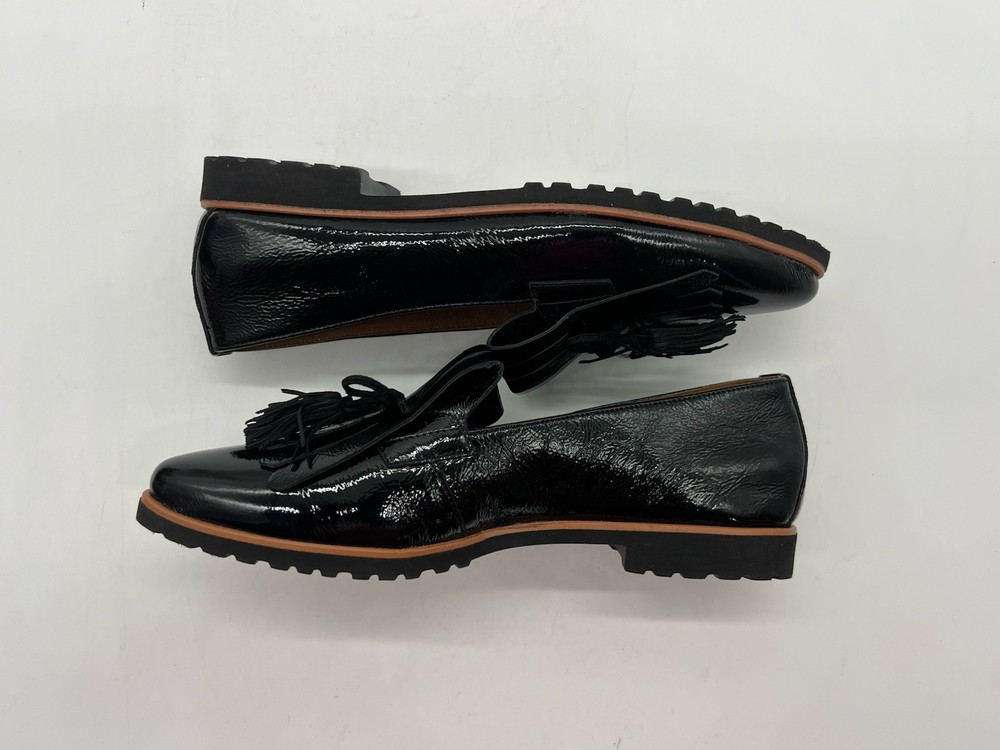 Paul Green Women’s 5.5 Sz US 8 Black Patent Leather Pointed Toe Tassel Loafers. Shoes are in used condition and have signs of wear but shoes are still in great condition. Upper leather is in excellent condition and very clean , inside is clean and the soles are in great condition. Nice comfortable shoes for casual wear. Condition is pre-owned. Shipped with ups or usps priority mail. Sold as pictures. Thank you! Feel free to message me for any questions. Thank you