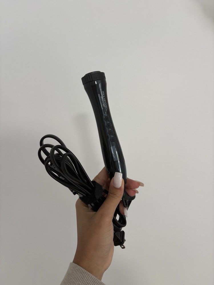 The Paul Mitchell Pro Tools Express Ion Unclipped 3-in-1 Curling Wand in black is a versatile hair styling device suitable for all hair types. With a maximum temperature of 410 °F and adjustable heat settings, this curling iron provides precise styling capabilities. The ceramic material ensures even heat distribution, while the interchangeable barrels allow for customized styling options. Featuring ionic technology and instant heat, this wand is perfect for achieving salon-quality curls with ease. Additionally, the dual voltage feature makes it convenient for use both at home and on the go. Excellent condition!!