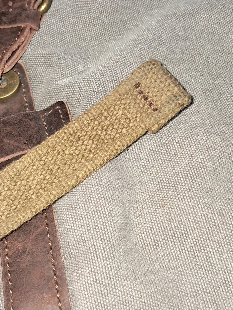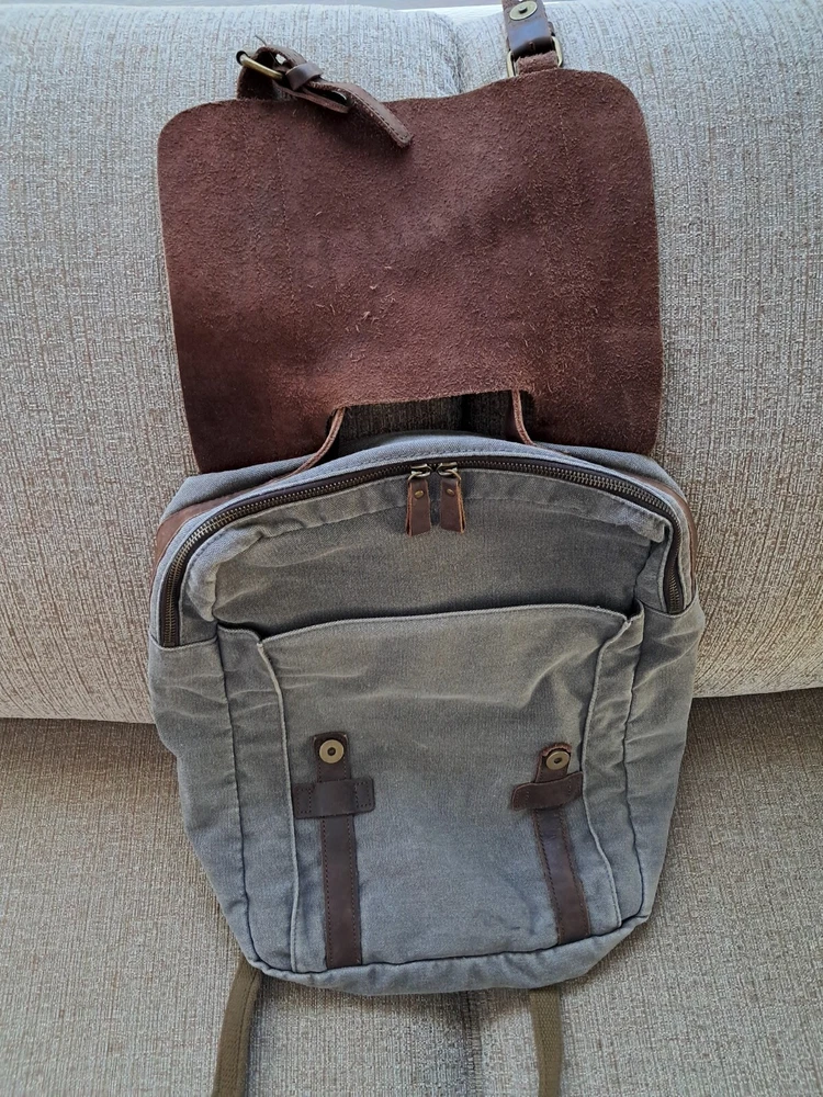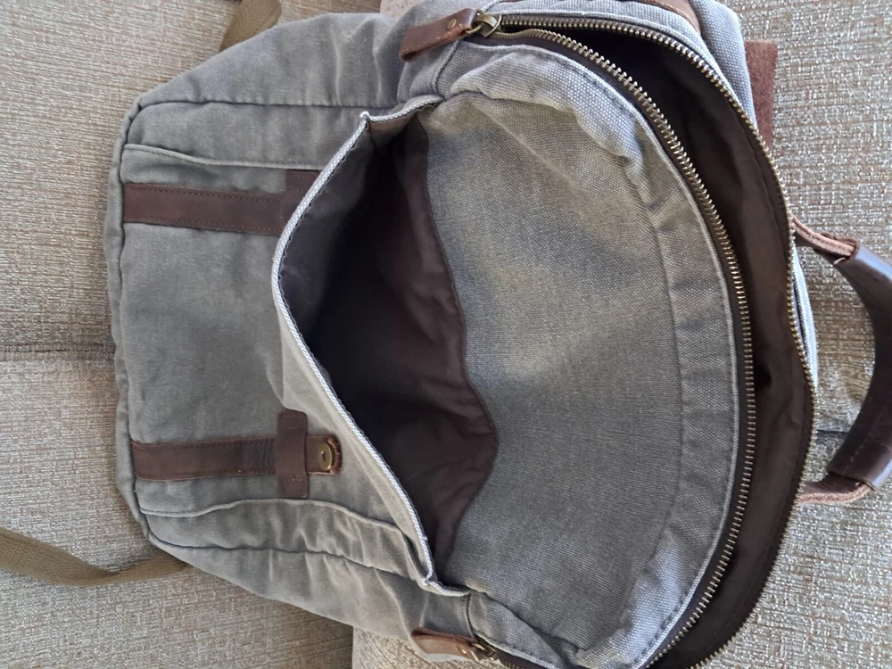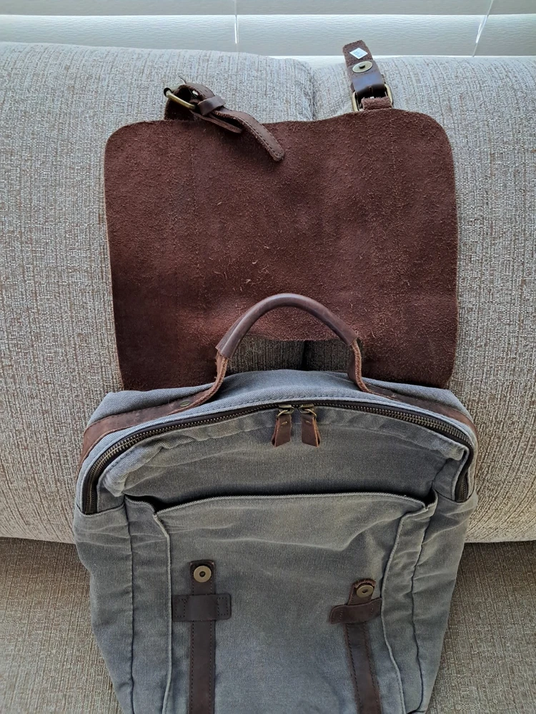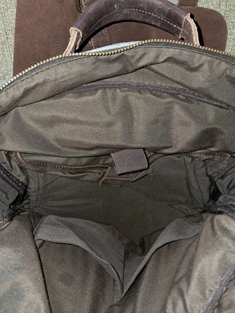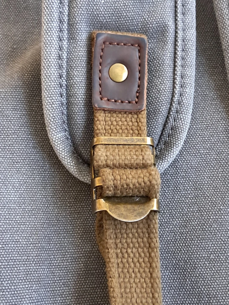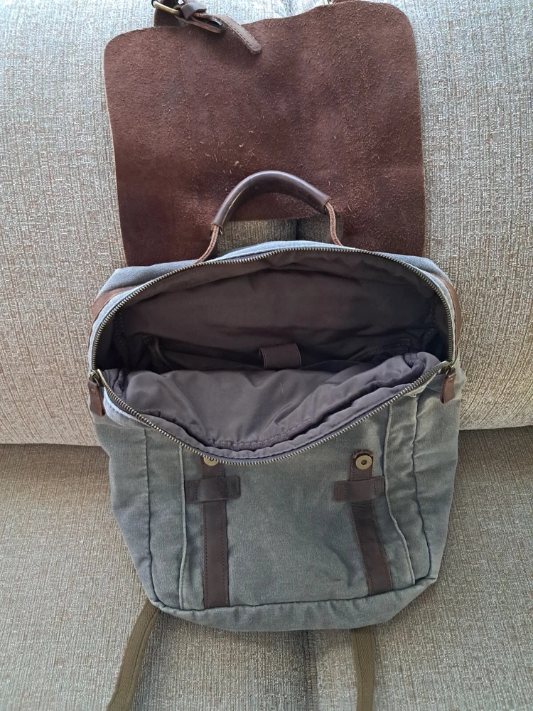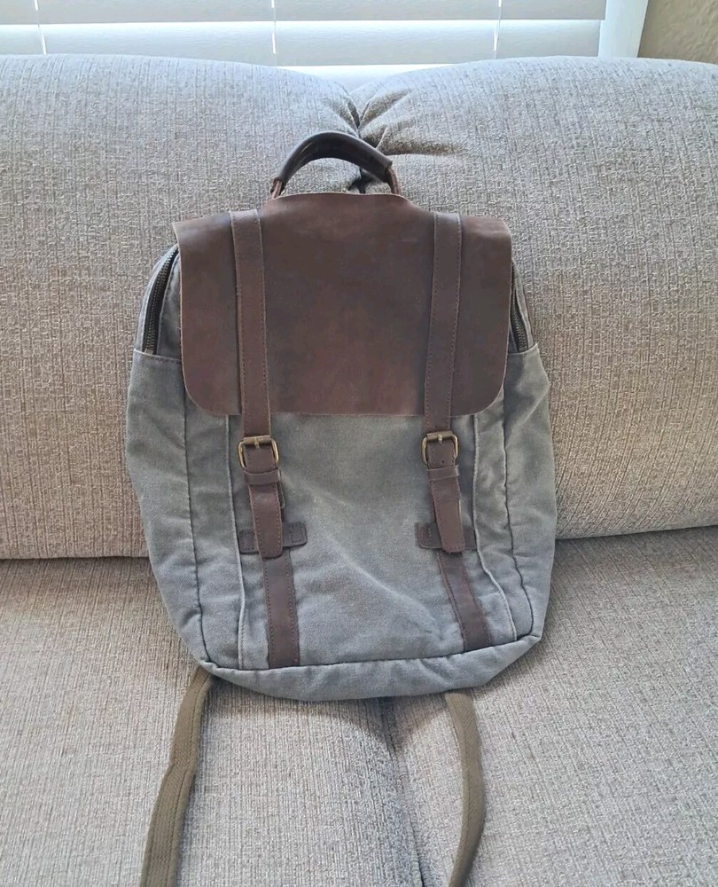Paul Richard Bookbag Backpack Canvas Leather Brass W Padded Laptop Sleeve See specifics from the Paul Richard website on picture 3 and 4. Heavy canvas great leather detals. Reinforced top. The only markings are on the front snaps . NOATD8830168. NO 8833313 A