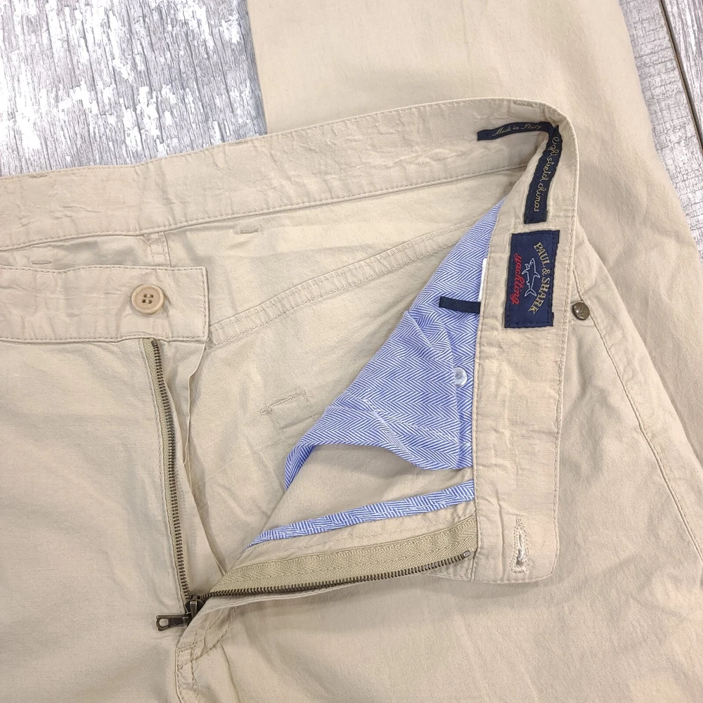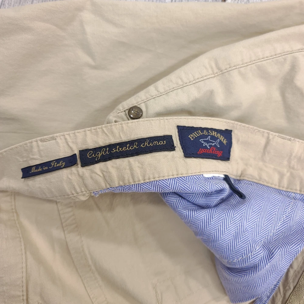 Season: Fall, Spring, Summer, Winter Country/Region of Manufacture: Italy Department: Men Handmade: No Fabric Type: Knit Occasion: Business, Casual, Travel, Workwear Pattern: Solid Size: 32 Color: Beige Seller Notes: “Great Pre-Owned Condition.” Size Type: Regular Leg Style: Straight Style: Chino Material: Cotton Inseam: 31 in Features: Comfort, Easy Care, Lightweight, Pockets, Stretch Waist Size: 32 in Brand: Paul & Shark Pocket Type: 5-Pocket Design Rise: Mid (10-12 in) Closure: Button, Zip Front Type: Flat Front Theme: Preppy, Retro, Classiccore, Classic, Basic Vintage: No Accents: Button, Logo Type: Pants Fit: Regular Garment Care: Machine Washable Personalize: No