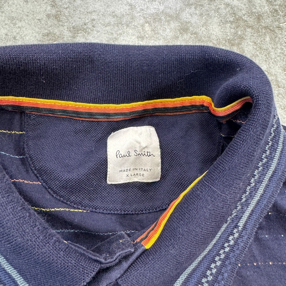 Pattern: Striped Brand: Paul Smith Size Type: Regular Country of Origin: Italy Size: XL Features: Slimming Season: Fall, Spring, Summer, Winter Theme: Preppy Fabric Type: Knit Vintage: No Fabric Wash: Light Type: Polo Handmade: No Material: Cotton Occasion: Activewear, Casual, Travel, Workwear Collar Style: Spread Personalize: No Neckline: Collared Performance/Activity: Rugby, Tennis Fit: Slim Closure: Pullover Color: Blue Department: Men Sleeve Length: Short Sleeve Accents: Button, Embroidered, Logo Garment Care: Machine Washable