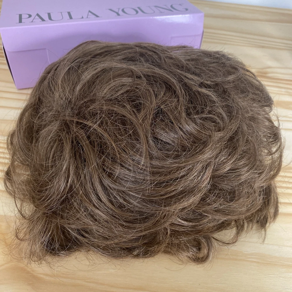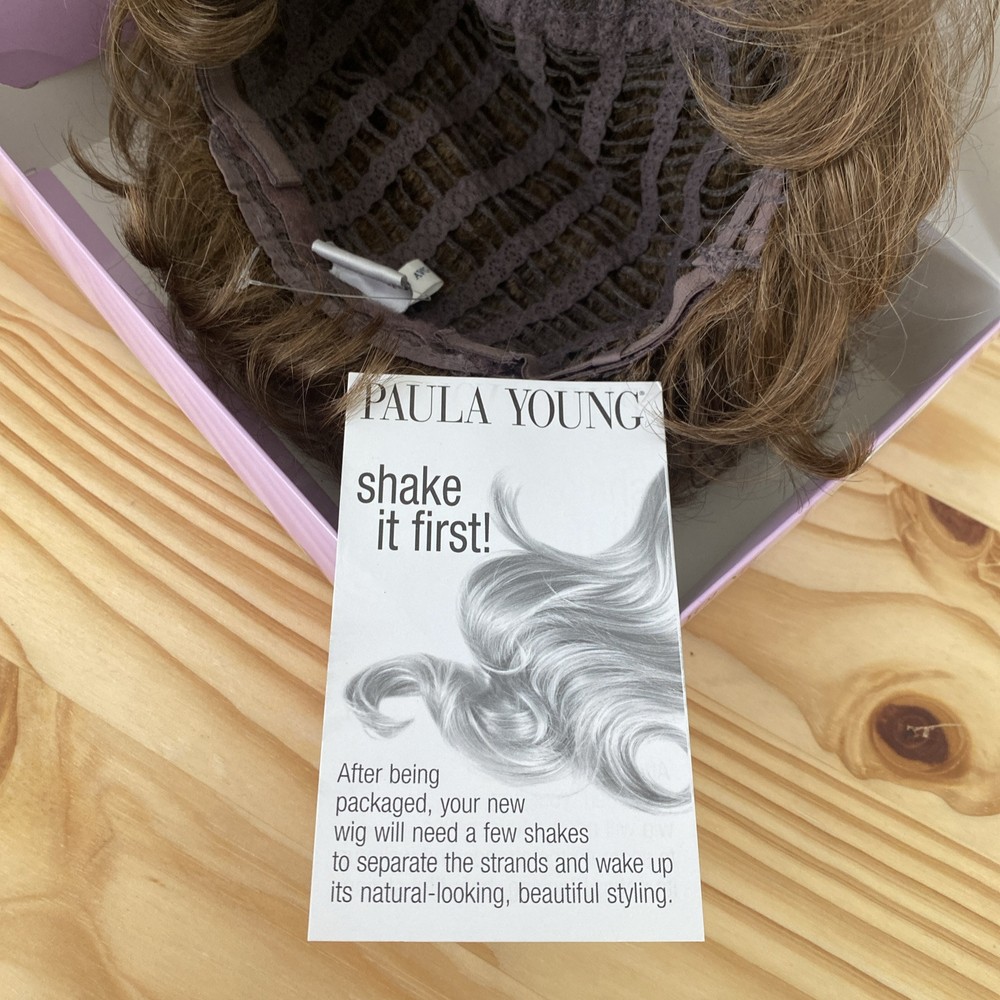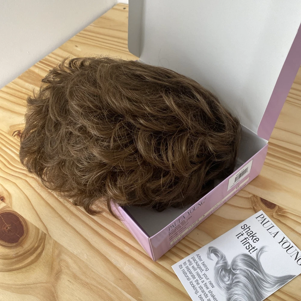This Paula Young Wig A2070 DANCE-Petite in color 12 Medium Brown is designed for women, teens, and adults with a small cap size. The wig features a classic cap construction with straight, layered WhisperLite Fiber synthetic hair that falls at a shorter length, creating an average size overall look. The wig is styled in a fashionable manner and is ideal for those seeking a stylish and manageable hairpiece.