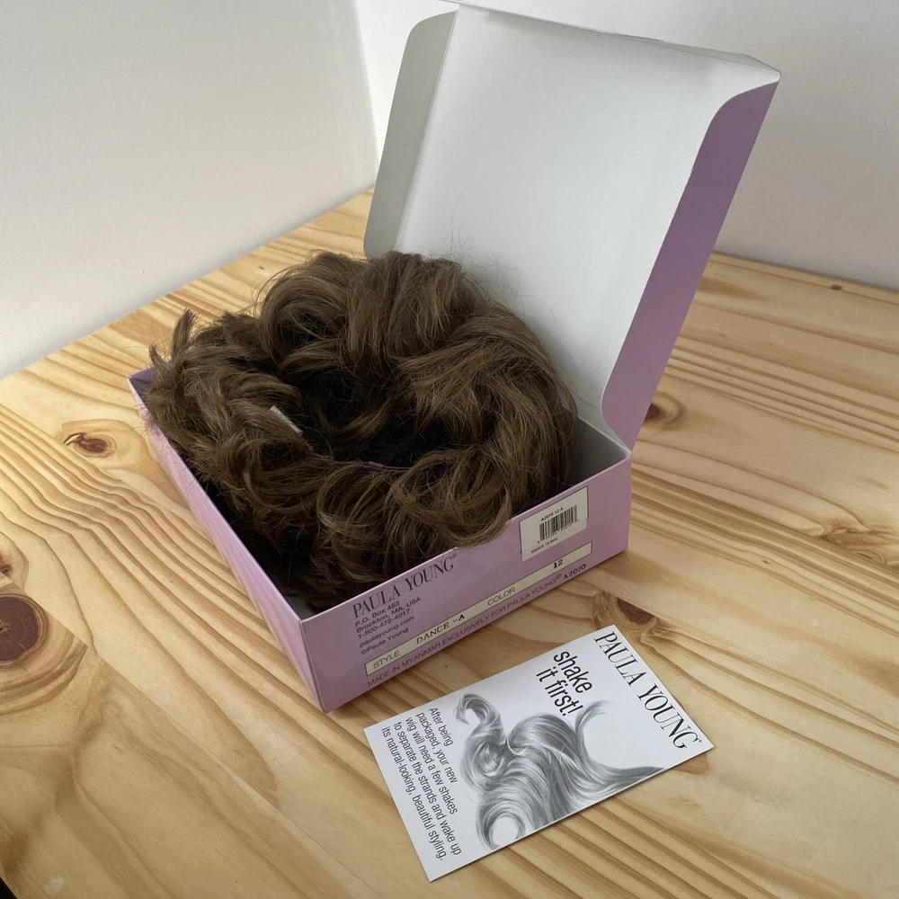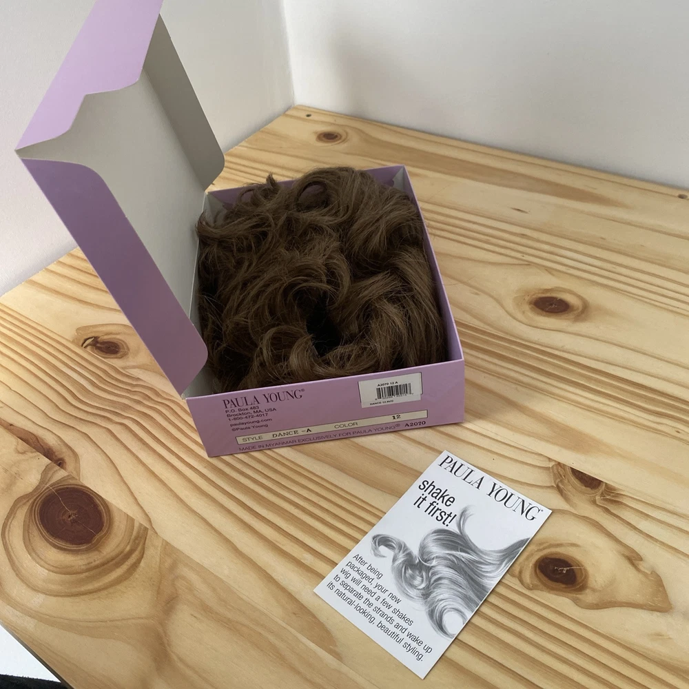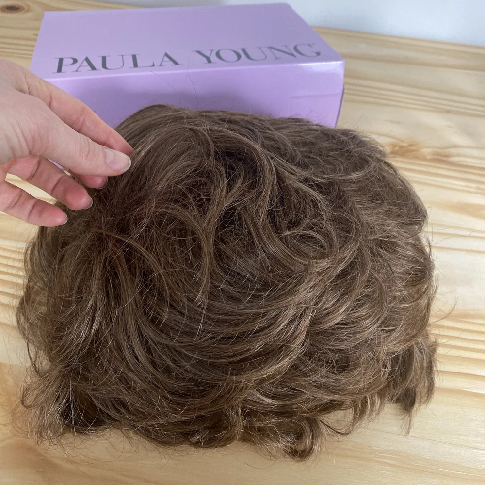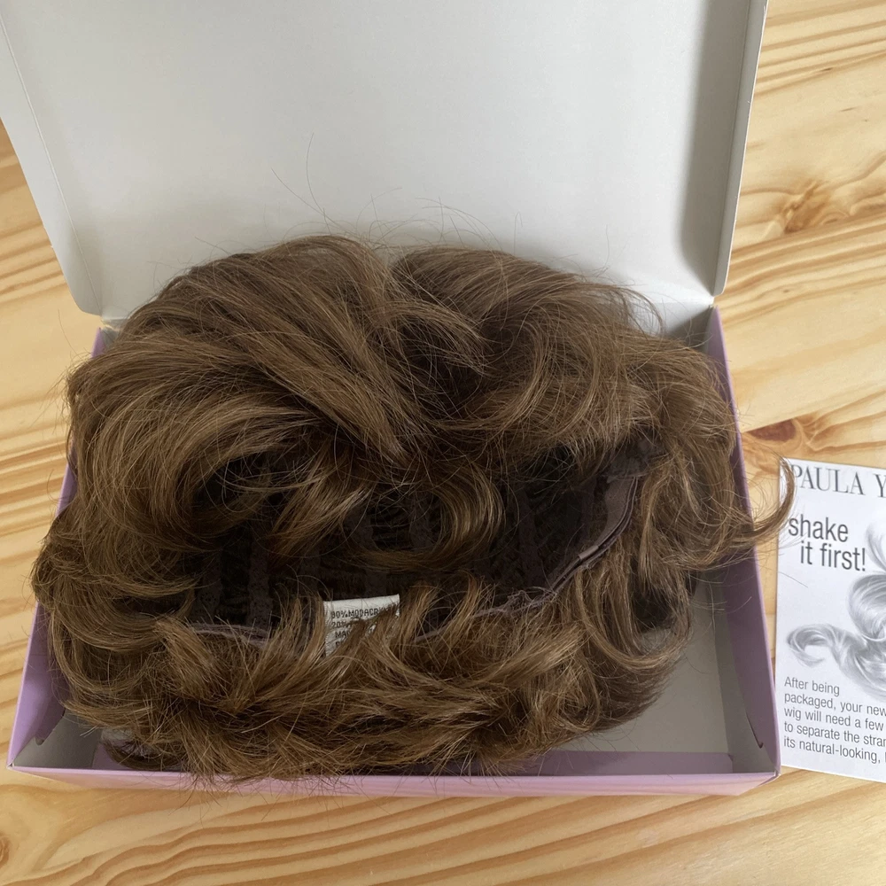 This Paula Young Wig A2070 DANCE-Petite in color 12 Medium Brown is designed for women, teens, and adults with a small cap size. The wig features a classic cap construction with straight, layered WhisperLite Fiber synthetic hair that falls at a shorter length, creating an average size overall look. The wig is styled in a fashionable manner and is ideal for those seeking a stylish and manageable hairpiece.