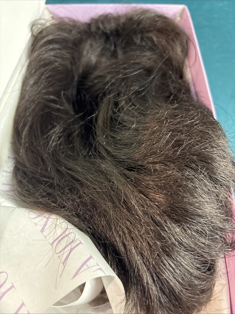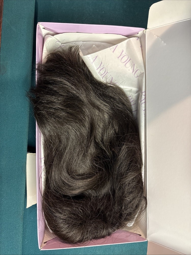 Brand new wig, box claims it says never Dallas by accident. Color is Dark brown almost black