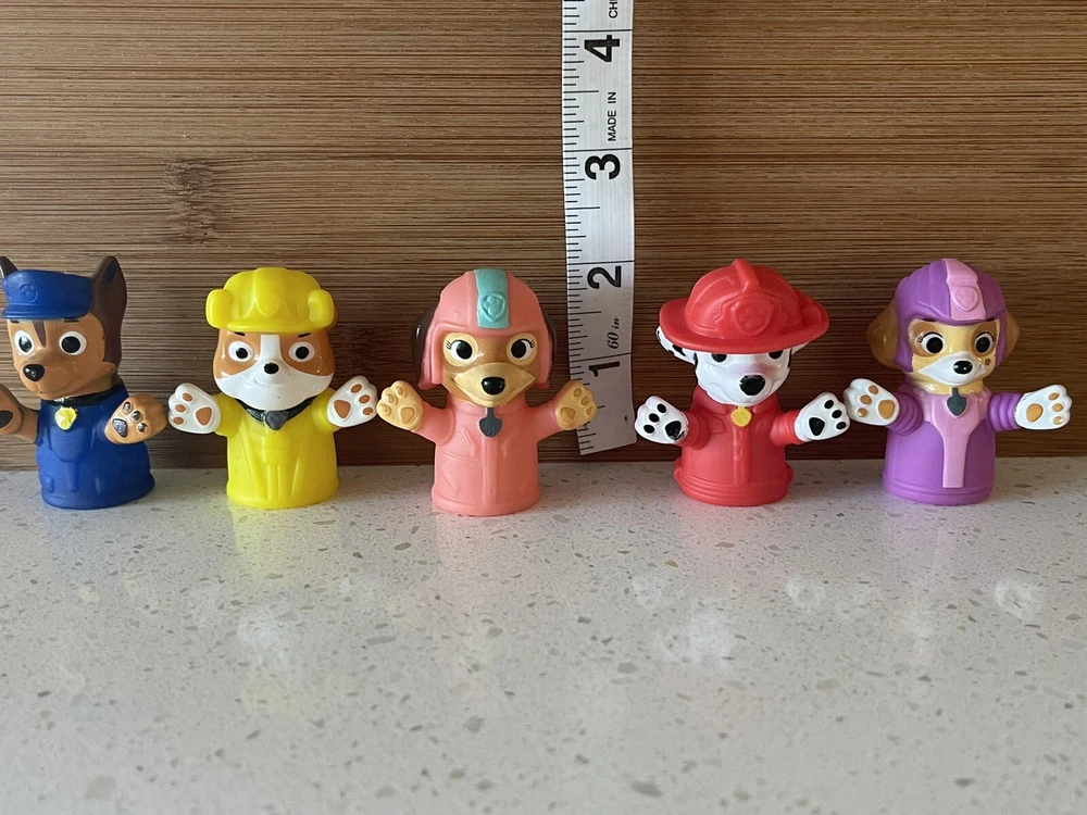 This Paw Patrol Finger Puppet Figure Toy set includes Chase, Marshall, Skye, Zuma, and Rubble Dog Set Of 5. Perfect for any Paw Patrol fan, these figures are made for imaginative play and storytelling. Each figure is designed with intricate details that accurately capture the essence of the beloved characters. Clean and from a smoke-free home.