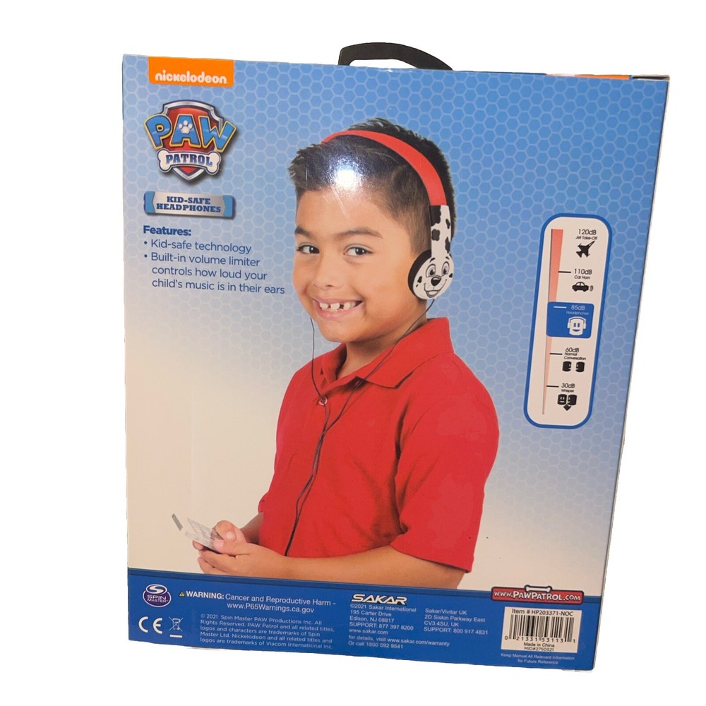 The Paw Patrol Marshall Nickelodeon Kid Safe Headphones are designed for children with features such as volume limitation and an adjustable headband to ensure a safe and comfortable listening experience. These on-ear headphones come in a fun white, red, and black color scheme featuring the popular Paw Patrol character Marshall from the Nickelodeon TV show. With a 3.5mm jack for connectivity, kids can enjoy their favorite music, shows, and games without the risk of damaging their hearing.