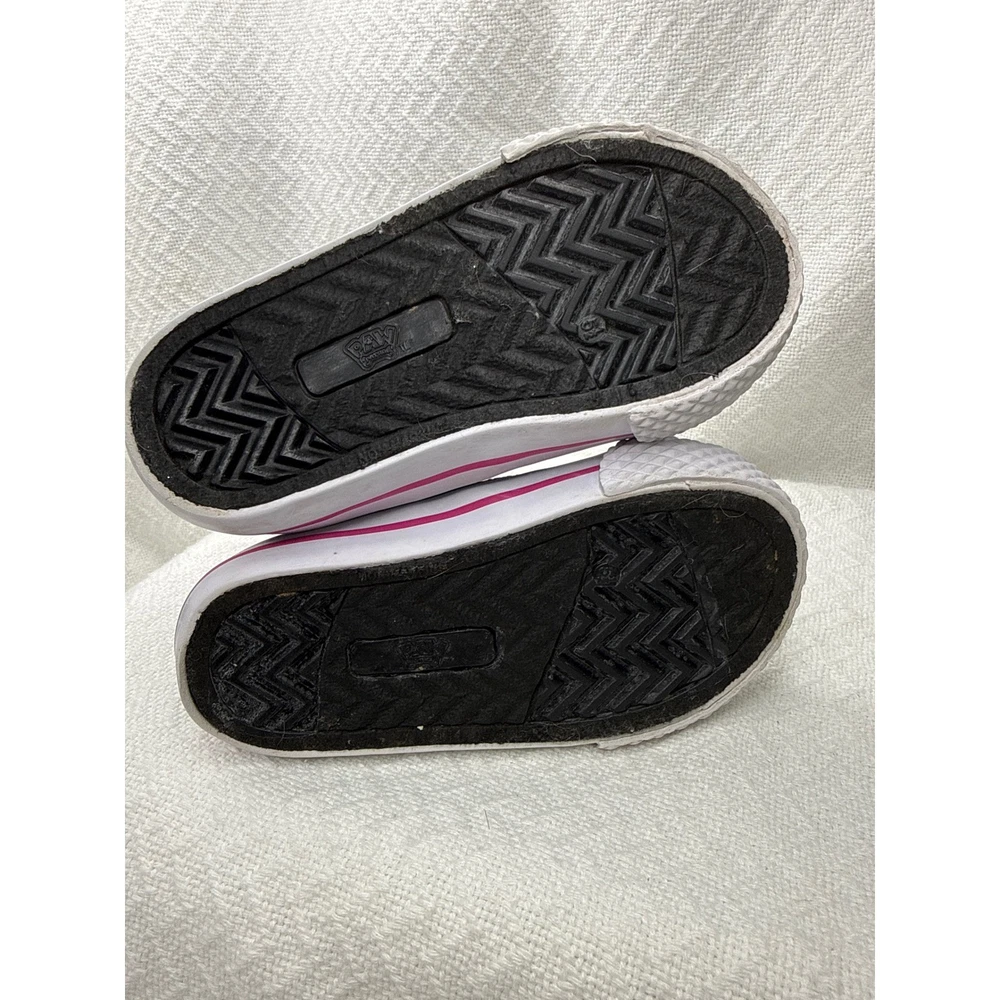 Adorable Paw Patrol high-top sneakers featuring Skye and Everest. These cute toddler shoes boast a stylish denim-like exterior adorned with hearts and stars. The shoes have a pink lining and accent stripes, along with a classic white toe cap and sole. Designed for convenience, they include a functional zipper on the side for easy on and off, complemented by decorative laces. Perfect for everyday wear, casual outings, or themed playdates, these Paw Patrol sneakers are sure to delight any young fan. Keywords: Paw Patrol shoes, Skye Everest, toddler sneakers, high top shoes, kids shoes, size 5.5, girls sneakers, zip up shoes, casual shoes, character shoes, denim look, pink accents, toddler fashion