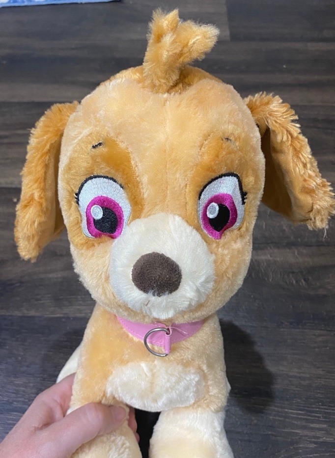 The Build-A-Bear Paw Patrol Skye Stuffed Animal Dog is a 12-inch plush toy featuring the beloved character Skye from the popular Nickelodeon show. This retired item was manufactured in 2016 and is part of the Build-A-Bear Workshop collection. Made of polyester and plush material, this pink-eyed stuffed animal is perfect for children aged 3-4 years old and can be a great addition to any Paw Patrol fan's collection. With its original design and high-quality construction, this Skye plush toy is sure to bring joy to any child's playtime.
