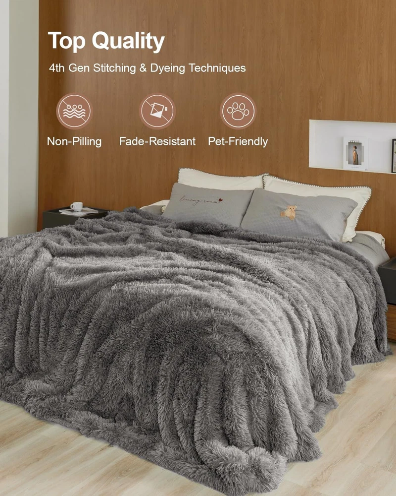 Pawque Luxury Faux Fur Throw Blanket Super Soft King Size Throw Blankets 90x9...