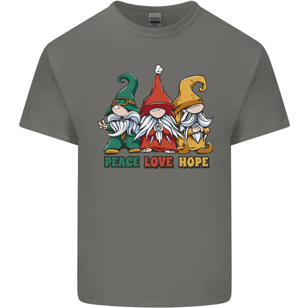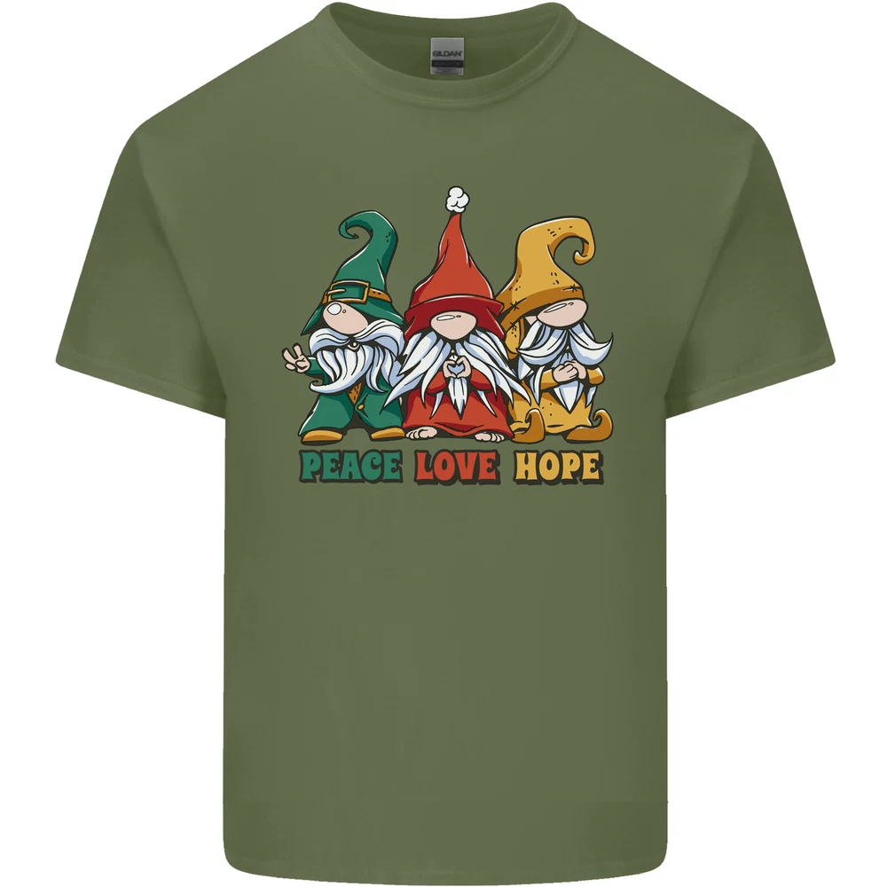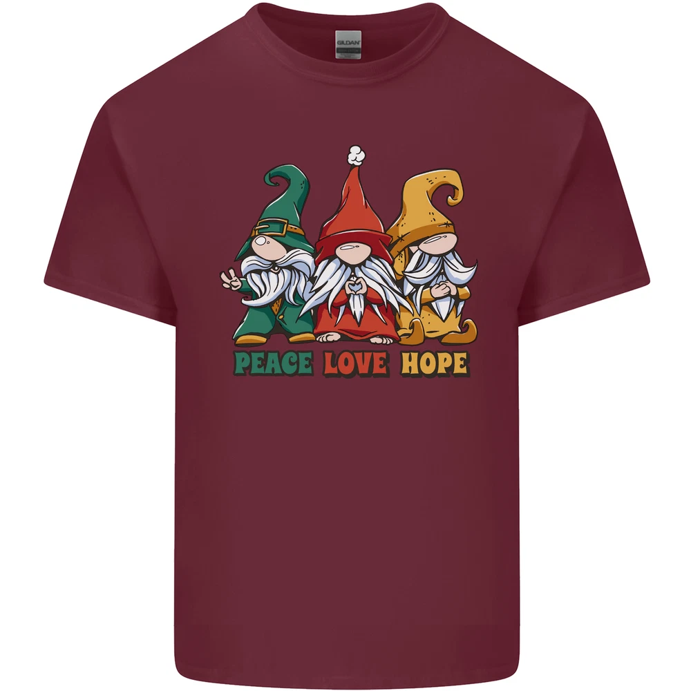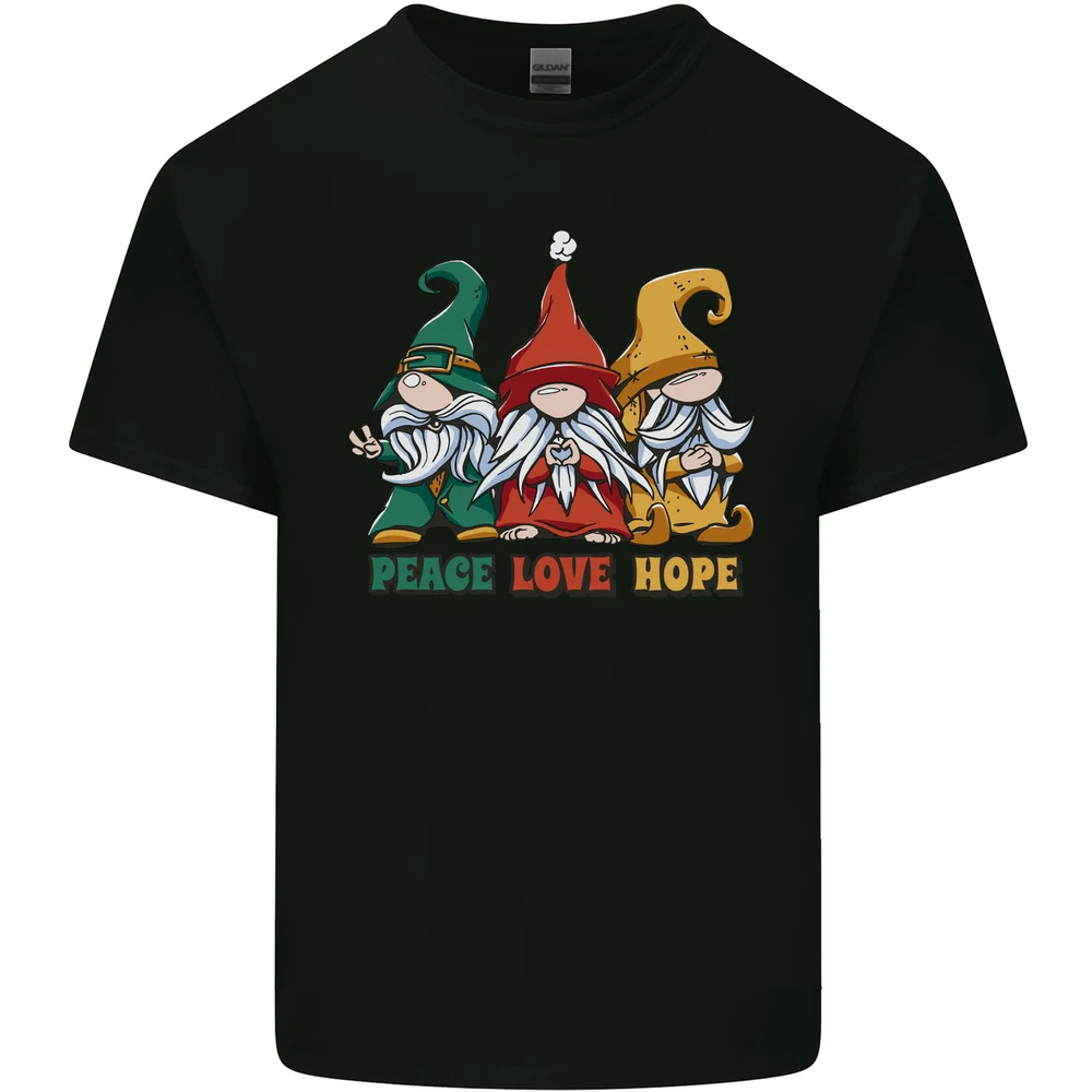 Peace Love Hope 3 Gnomes Mens Cotton T-Shirt Tee Top