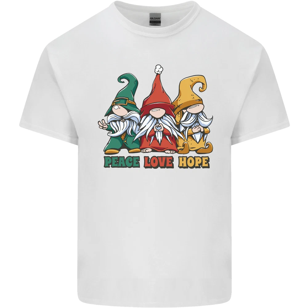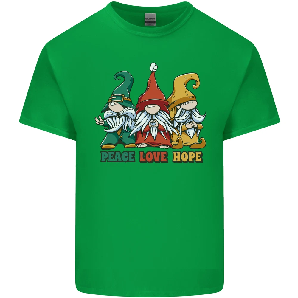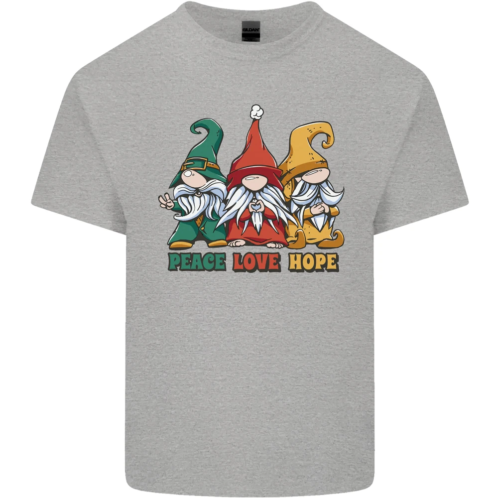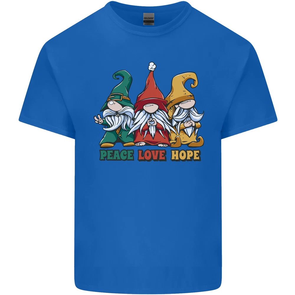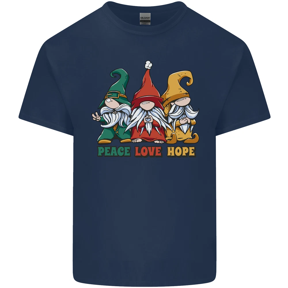 Peace Love Hope 3 Gnomes Mens Cotton T-Shirt Tee Top