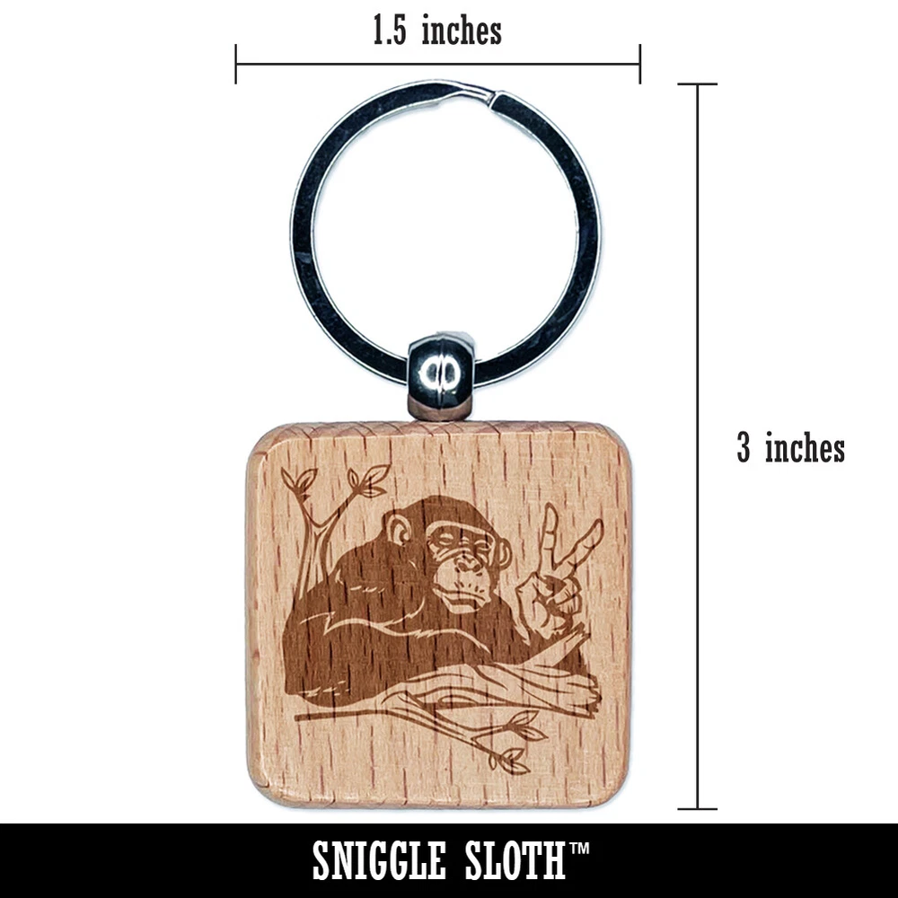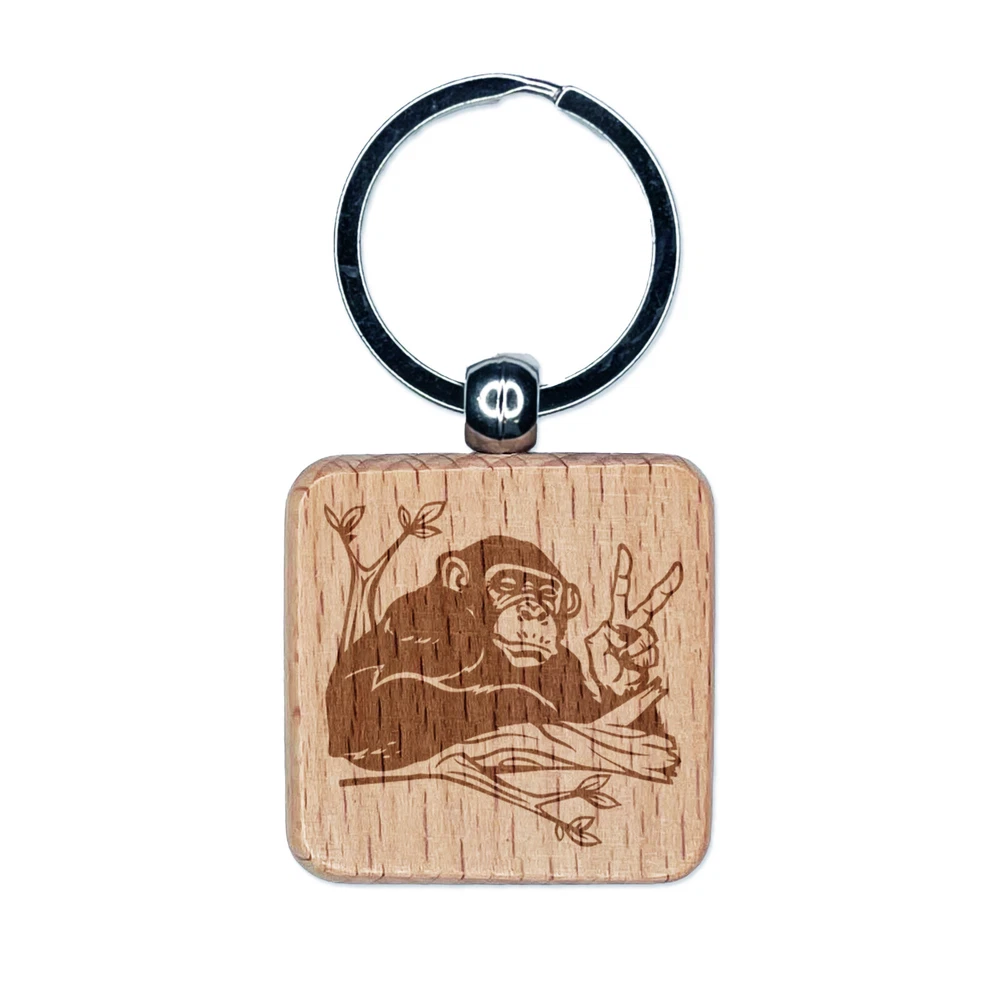 Peace Loving Bonobo Chimpanzee Engraved Wood Square Keychain Tag Charm