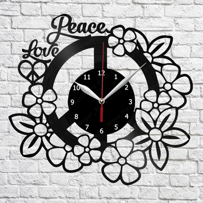 Peace and Love Vinyl Clock Record Wall Clock Condition: New Size: 12" (30cm) Material: vinyl record, built-in hanger, new movement quartz clock mechanism. Our clock mechanisms work quiet. * Requires 1 AA battery (not included) We pack our wall clocks in a separate protected box. This can be a unique gift for a birthday, anniversary, wedding, Mother's Day, Father's day and so forth. It is a beautiful decoration for hall, living room, office, playroom, kitchen, bedroom, children's room, nursery. Custom order Would you like to create something absolutely original? Nothing could be easier! Feel free to order your own unique design! Shipping We will need around 2-3 working days to make the vinyl clock and send it to you. All buyers will be provided with tracking numbers for their purchases. Shipping only by AIR Mail services. Contact Us Feel free to contact with us if you have any questions. We seek to answer for all messages as soon as it possible but, please note for the time difference about 7-10 hours, that's why some answers may be received only next day.