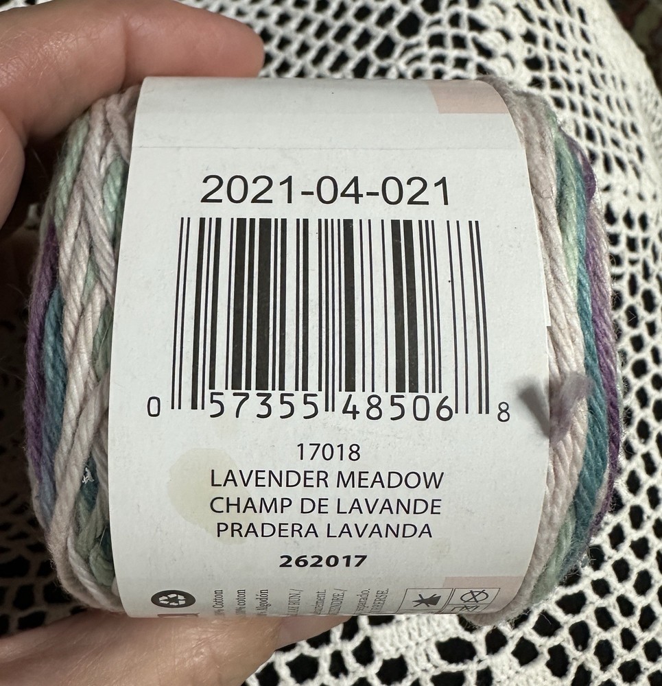 Lavender Meadow 100% cotton yarn 2 oz. 102 yds Will combine yarn orders.