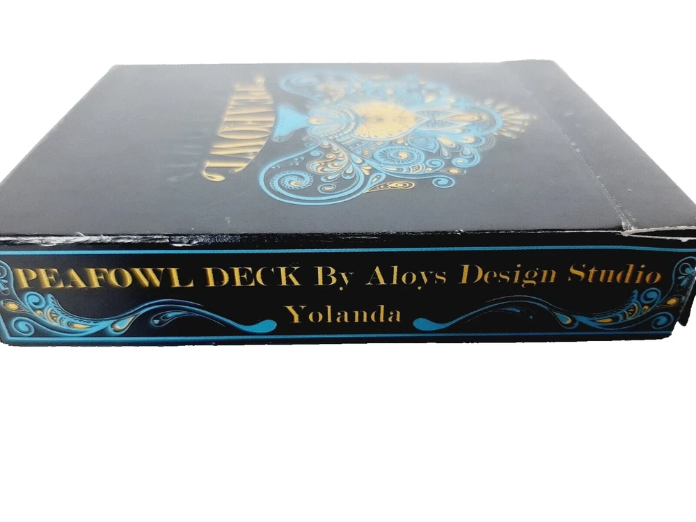 Peafowl Black Playing Cards Aloys Design Studio Yolanda Deck Linoid Finish Complete 52 card deck plus 2 jokers Very dramatic and unique dark black deck Overall good condition - box shows signs of wear, mostly at corners and edges; cards look great!