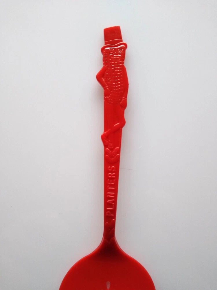 Original Peanut red color promo plastic serving slotted spoon. Vintage item found in old storage. Never used but has been in storage for many years and some minor wear scuffs. Size is 5.5". Super gift for Mom Dad or any . Peanut fan. SHIPPING Bundle and save by using cart and making single payment. International buyers are responsible for any import fees/taxes.