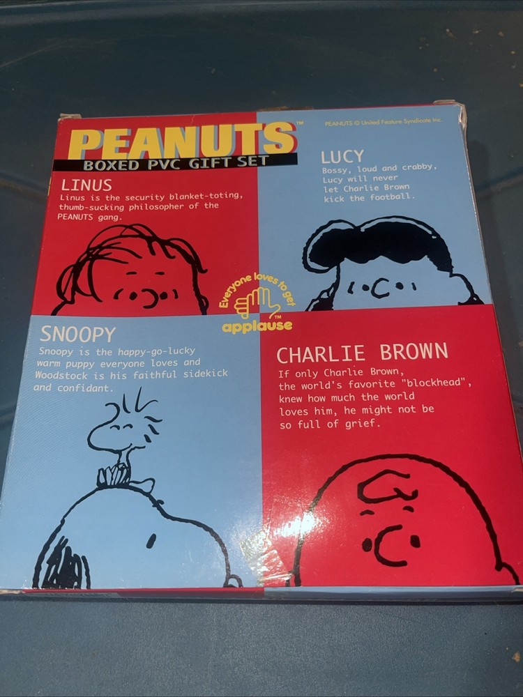 This Peanuts Charlie Brown Snoopy Linus Lucy Boxed PVC Gift Set by Applause is a nostalgic collectible featuring beloved characters from the Peanuts franchise. The figurines are made of PVC and come in a boxed set, making them perfect for display or as a gift for fans of Charlie Brown and his friends. The vintage design and cartoon theme add to the charm of this set, which captures the essence of the classic comics and TV show.