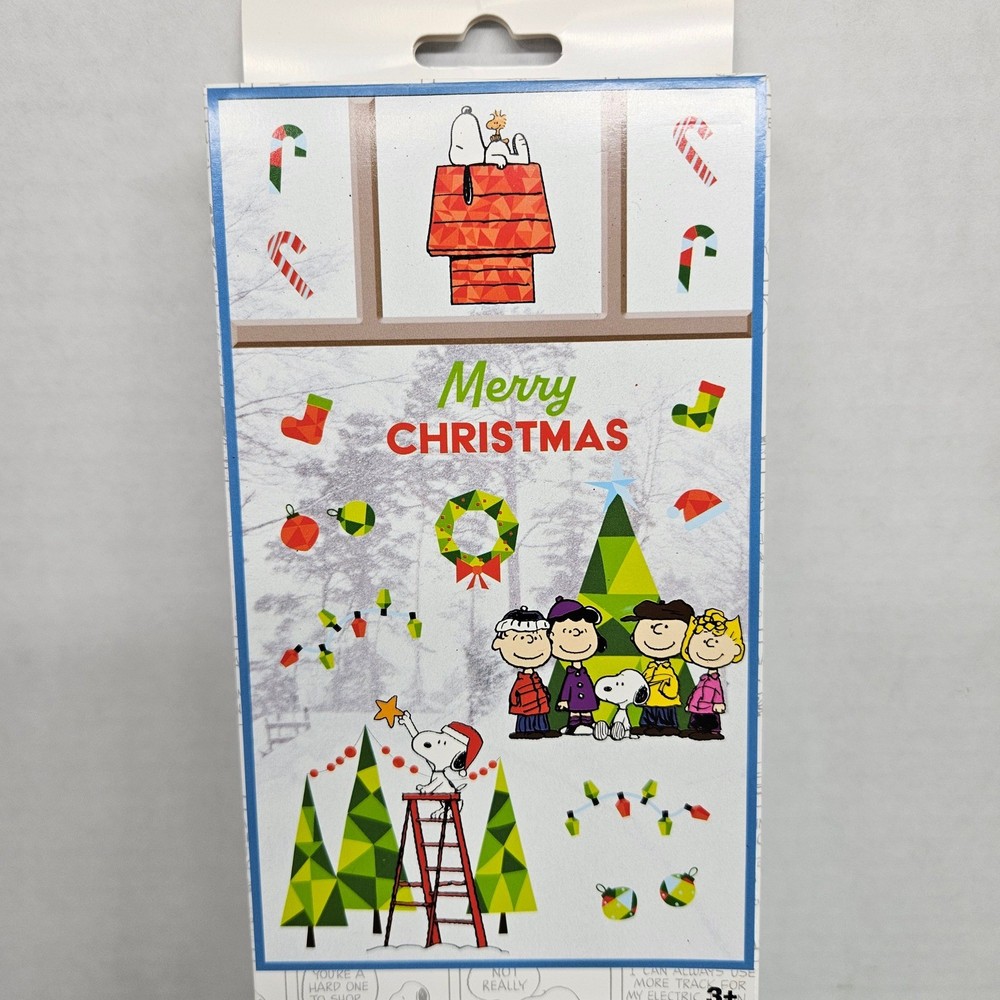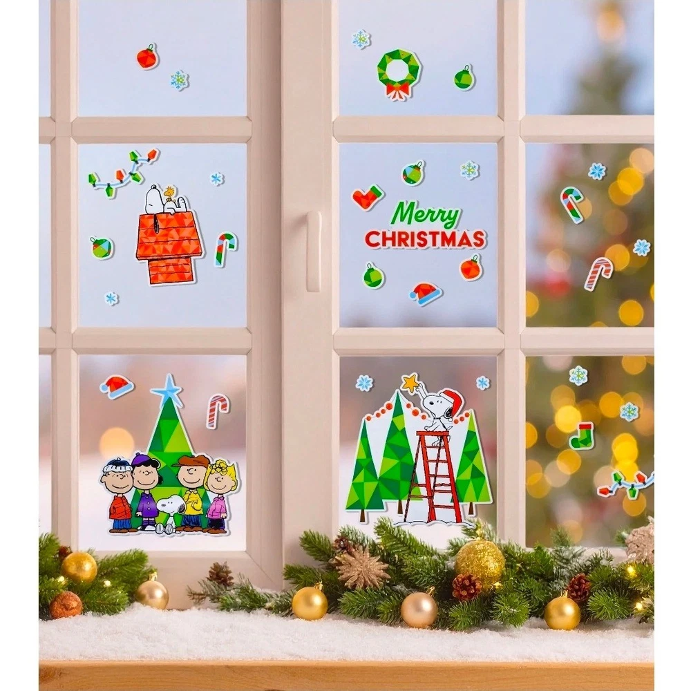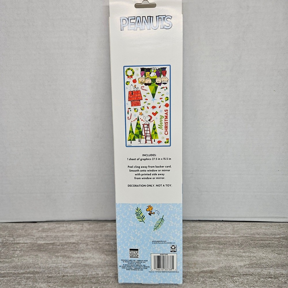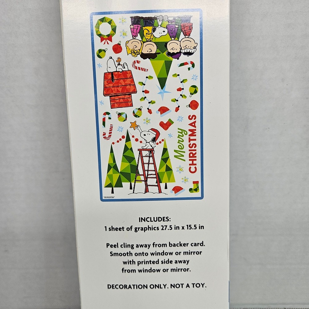 Brighten your home with these delightful Peanuts Christmas window clings. Snoopy and the gang bring festive cheer to any window or mirror with their iconic characters and holiday scenes. Effortlessly peel, stick, and reposition these self-adhesive decorations to create a whimsical winter wonderland. Perfect for adding a touch of nostalgia and fun to your holiday celebrations, these clings are ideal for decorating your living room windows, children's bedrooms, or even your office space during the festive season. Measurements: • Sheet of graphics 27.5 in x 15.5 in (69.9 cm x 39.37 cm) Type: Stickers & Decals Occasion: Christmas Material: Vinyl Department: Kids Character Family: Peanuts Character: Snoopy Item Length: 27.5 in Room: Any Room Shape: Fir Tree Item Height: 27 in Style: Vintage/Retro Item Width: 15 in Orientation: Vertical Care Instructions: Clean with Damp Cloth Unit Type: Unit Keywords: Snoopy, Christmas, Holiday, Window Clings, Peel and Stick, Reusable, Festive, Decorations, Winter, Kids, Family, Merry