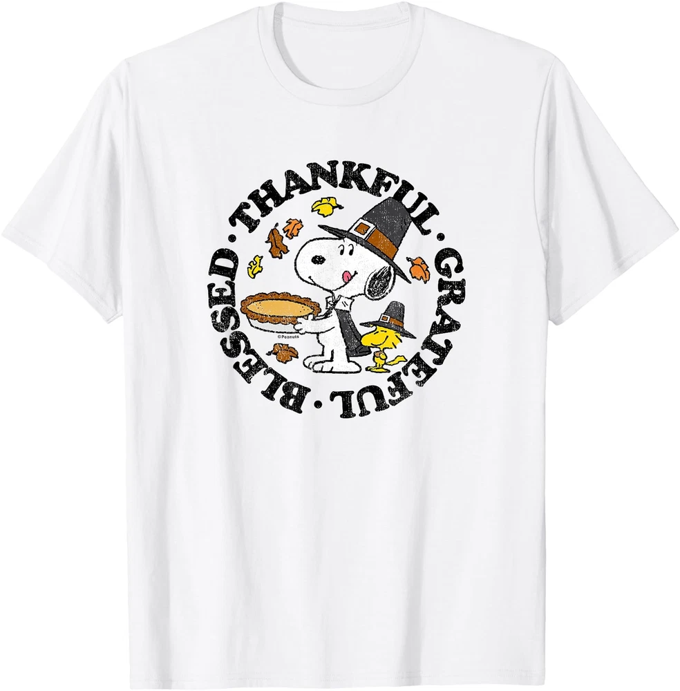Peanuts Snoopy Thanksgiving Pie Blessed Thankful Grateful T Shirt Men