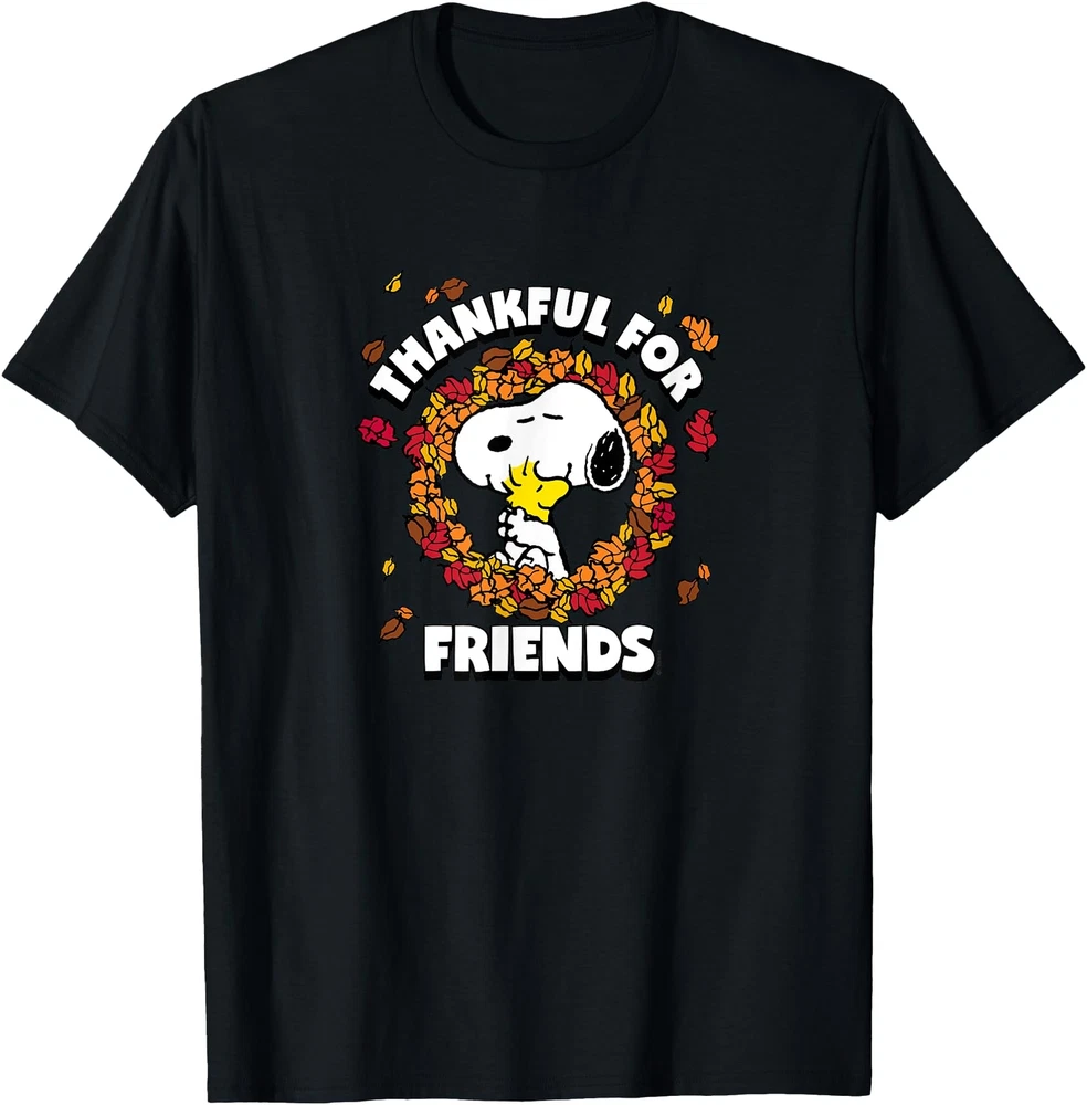 Peanuts Snoopy Woodstock Thankful For Friends Leaf Circle T Shirt Men