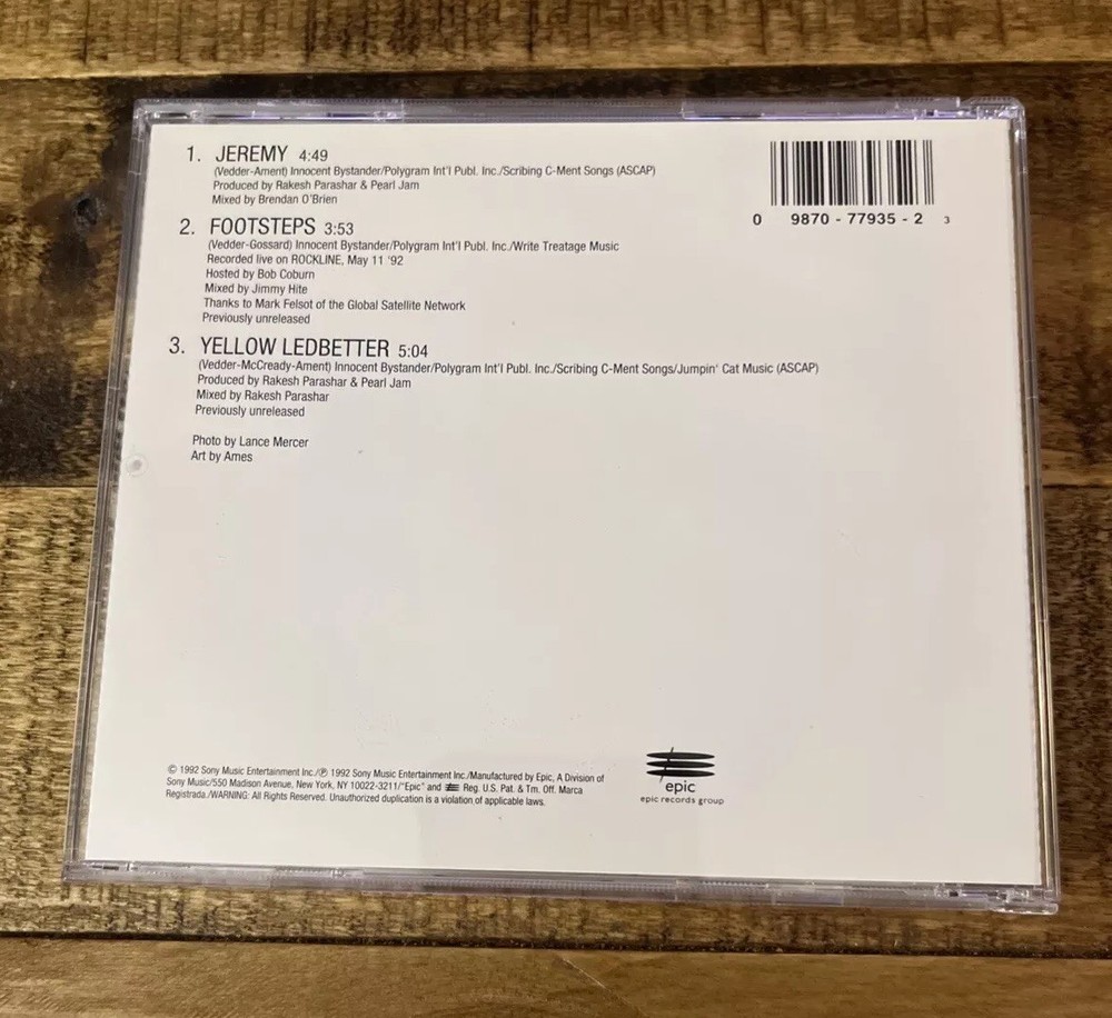 Pearl Jam - Jermey Single. Original 1992 Release on CD. Tracks: Jeremy, Footsteps, Yellow Ledbetter. Must have for a Pearl Jam fan.