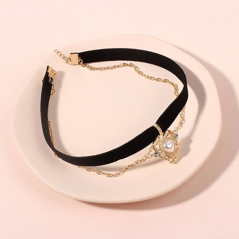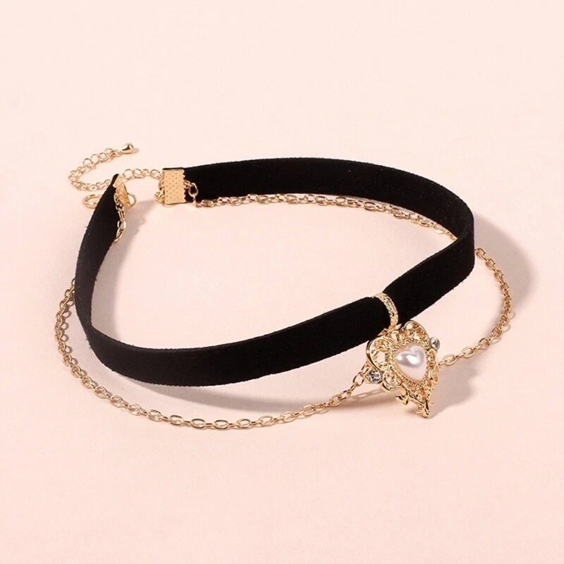 Pearl Heart Pendant Necklace for Women Gold Chain Retro Double Layer Choker Features: Type:Necklace Gothic Quantity: 1 piece. Alloy, Color: As shown. Crowd: Women, Lady, Girls, Men Specifications: Alloy+Velvet Weight: 10g Size: As picture shows Package Includes: 1x Pendant Choker note: 1.Please allow 1-2cm errors due to manual measurement, make sure that you do not mind before you order. 2.Due to the difference between different monitors, the picture may not reflect the actual color of the item.