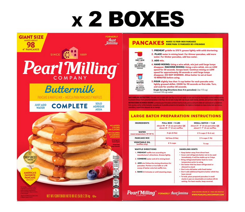 Full Product Description with Bullet Points: Enjoy hearty, delicious pancakes anytime with Pearl Milling Company Original Complete Pancake Mix. This 2-pack of 10 lb. bags offers a convenient, ready-to-use mix perfect for busy mornings or large gatherings. Product Features: 🥞 Complete Mix – Just Add Water: No need for milk or eggs—just add water and cook for fluffy, golden-brown pancakes. 📦 Bulk Size – 2 Packs of 10 lb. Each: Ideal for families, restaurants, or meal prepping—makes dozens of pancakes per bag. 🍯 Classic Original Flavor: Rich, homemade taste that pairs perfectly with syrup, fruit, or your favorite toppings.