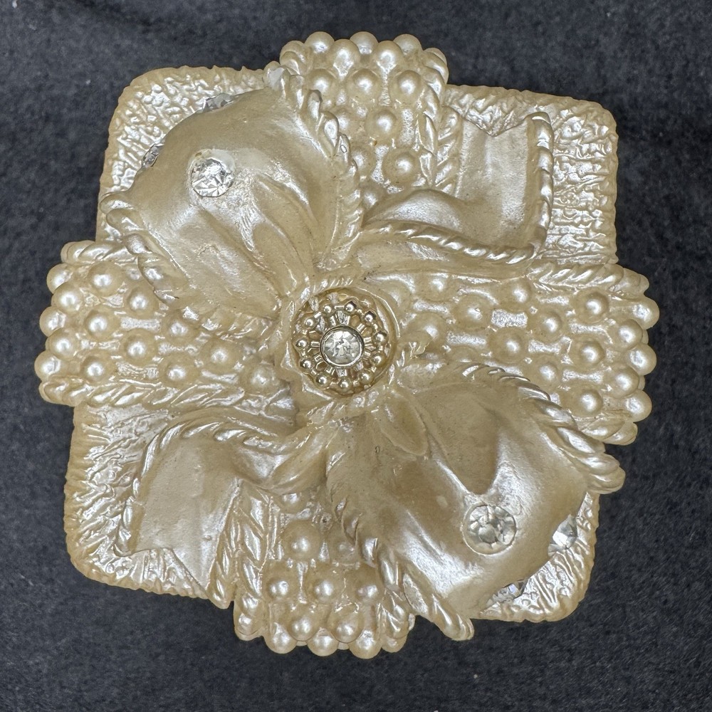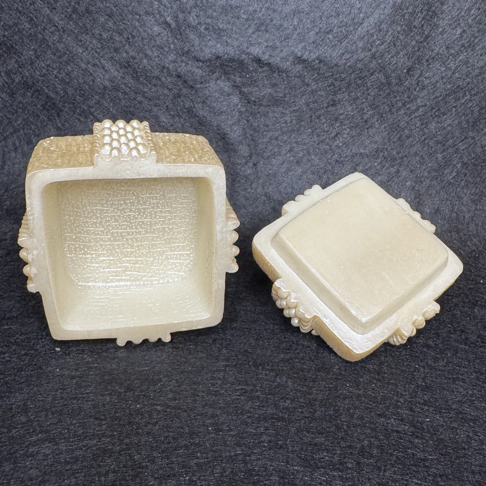 This Pearlescent Trinket Box with Faux Pearl Details in a square shape is a stylish and elegant addition to any gift or jewelry collection. The beige color and medium size make it versatile for both adults and girls. Made from mixed materials, this original piece features the brand Pearl and exudes an aesthetic movement style. The trinket box is boxed for easy gifting and can be cleaned with a damp cloth for maintenance. Perfect for storing small treasures or keepsakes, this trinket box is a chic and practical choice for any occasion.