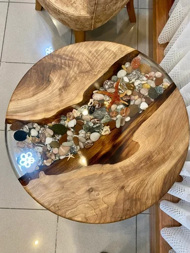 Pebble Decor Table, Epoxy Coffee Table, Epoxy Round Table, Resin Furniture Decor