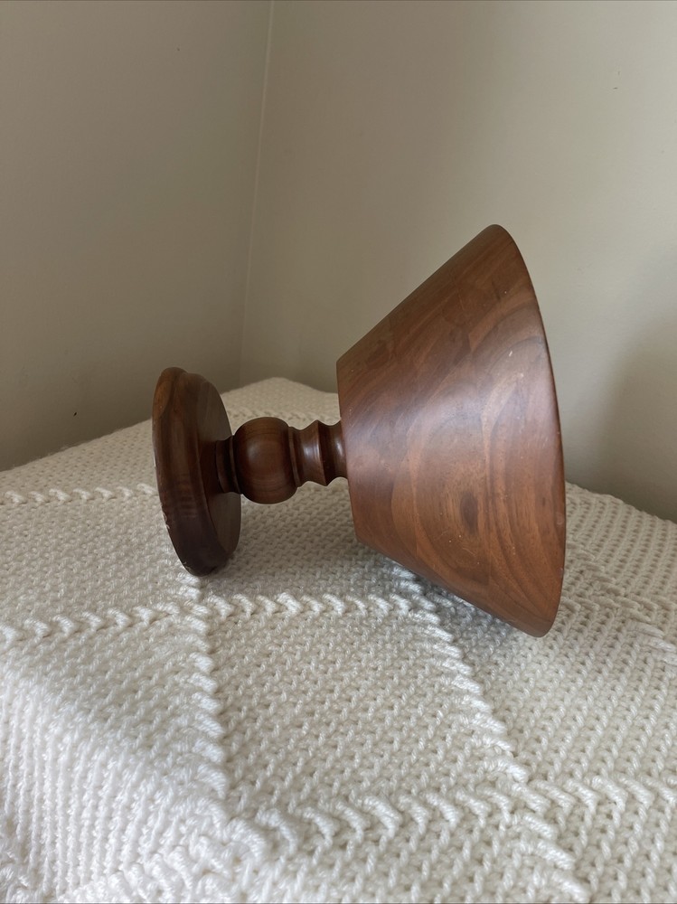 Pedestal Bowl Walnut Wood Footed Centerpiece Vintage Mid Century MCM Minimalist Please see photos.