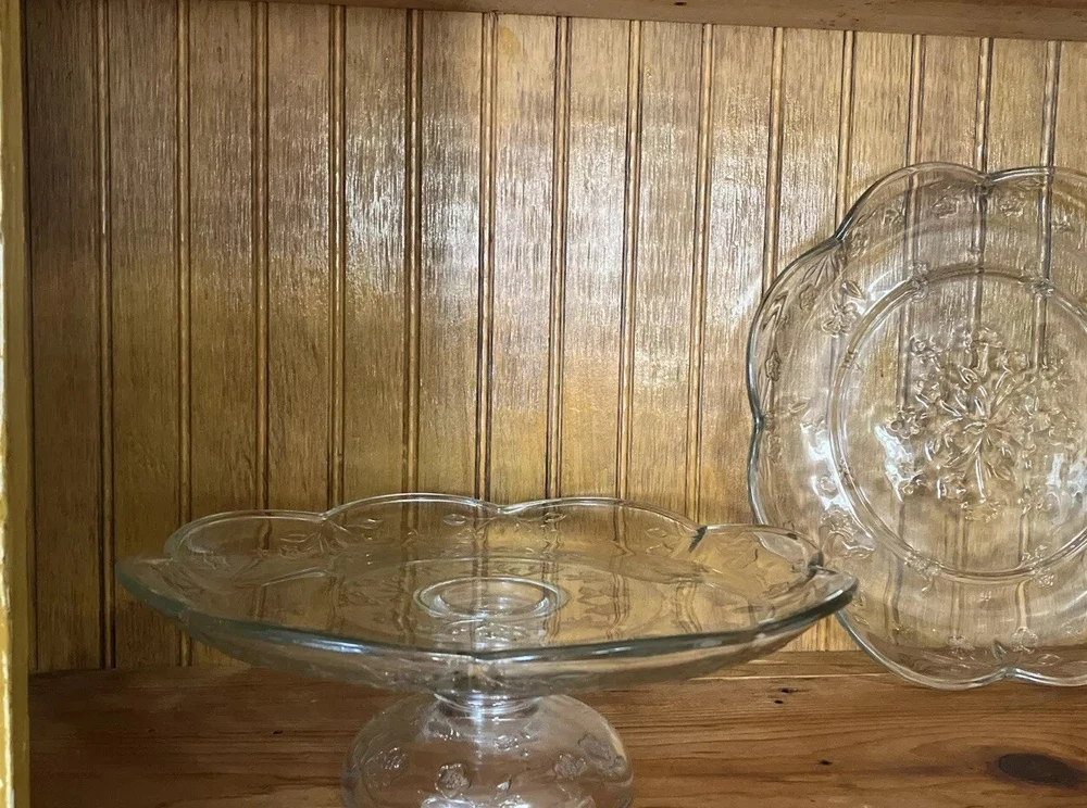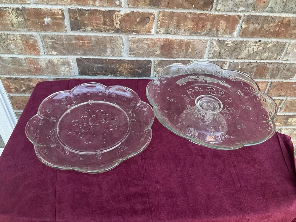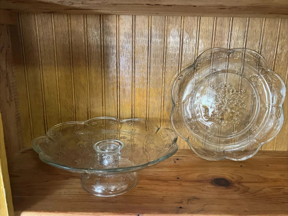 Pedestal Cake Stand & 12" Round Serving Platter Anchor Hocking SAVANNAH