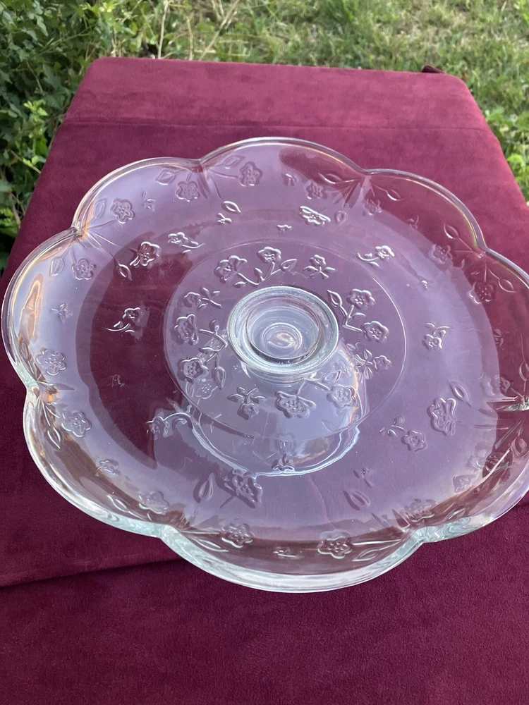 Brand: Anchor Hocking Shape: Round Color: Clear Material: Glass Type: Cake Stand