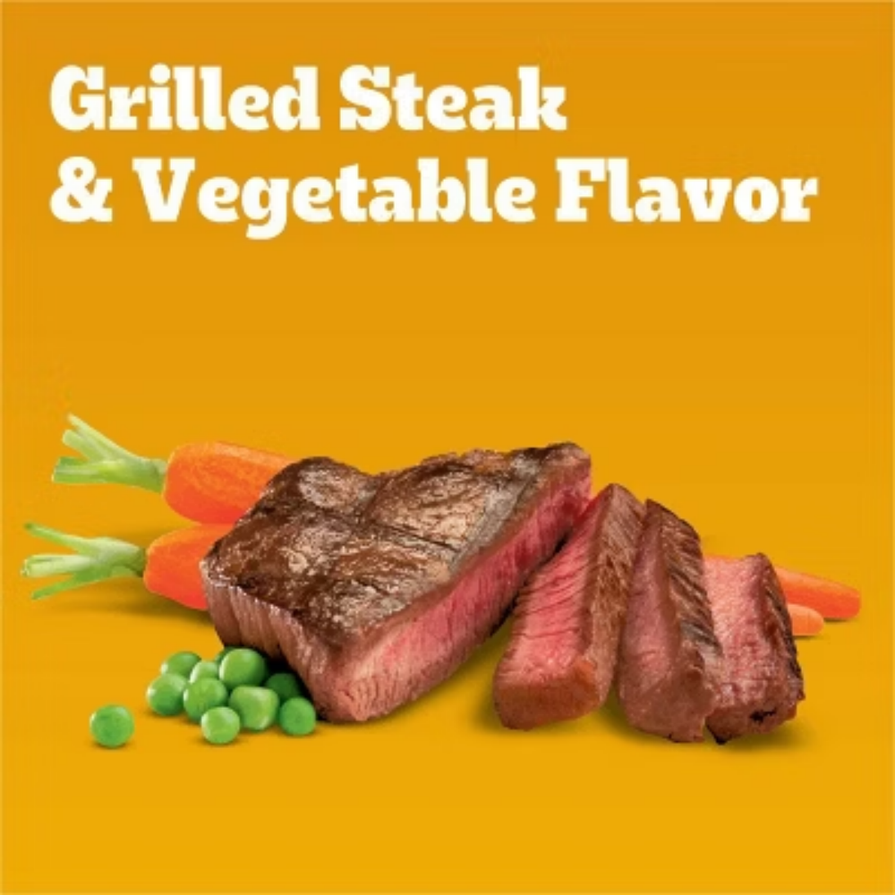Description Dogs bring out the good in us. Pedigree brings out the good in them. Express your love for your dog by serving Pedigree Complete Nutrition Adult Dry Dog Food, Grilled Steak & Vegetable Flavor. This 100% complete and balanced adult dry dog food recipe is great-tasting and contains whole grains, protein, and accents of vegetables, bringing your dog a meal with quality nutrition that keeps them happy. To support your dog’s health and vitality, this dry dog food recipe is formulated with 36 vitamins, minerals, and amino acids. It also contains Omega 6 Fatty Acid and Zinc to help nourish a healthy skin and coat. With no high fructose corn syrup, artificial flavors, or added sugars, Pedigree Complete Nutrition Adult Dry Dog Food, Grilled Steak & Vegetable Flavor shows your dog that you care…and have great taste. highlights Great Tasting: Pedigree Complete Nutrition, Adult Dry Dog Food, Grilled Steak & Vegetable Flavor is a great-tasting dry dog food recipe with whole grains, protein, and accents of vegetables. Quality Nutrition: This dry dog food recipe is made with 36 vitamins, minerals, and amino acids to support your dog’s health and vitality; Crafted with no high fructose corn syrup, artificial flavors, or added sugar. Supports Healthy Skin and Coat: This dry dog food recipe is enriched with Omega 6 Fatty Acid and Zinc to help nourish a healthy skin and coat. Complete and Balanced: Pedigree Complete Nutrition Adult Dry Dog Food, Grilled Steak & Vegetable Flavor is 100% complete and balanced food for adult dogs, bringing a nutritious meal to your pet. Make it a Merry Pet Christmas for your pet with flavors crafted for holiday joy! Deck the bowls and fill them with our real steak and beef ingredients! Contains one (1) 18 lb. Bag of Pedigree Complete Nutrition Adult Dry Dog Food, Grilled Steak & Vegetable Flavor. Ingredients: ground whole grain corn, meat and bone meal, soybean meal, animal fat (source of omega 6 fatty acids [preserved with bha and citric acid]), ground whole grain wheat, corn protein meal, natural flavor, dried plain beet pulp, salt, bha (preservative), citric acid (preservative), potassium chloride, choline chloride, dl-methionine, calcium carbonate, dried peas, natural grilled steak flavor, zinc sulfate, vitamin e supplement, l-tryptophan, red 40, dried carrots, yellow 6, niacin supplement (vitamin b3), blue 2, d-calcium pantothenate (vitamin b5), copper sulfate, sodium selenite, potassium iodide, yellow 5, vitamin a supplement, riboflavin supplement (vitamin b2), vitamin b12 supplement, thiamine mononitrate (vitamin b1), vitamin d3 supplement, pyridoxine hydrochloride (vitamin b6), folic acid.