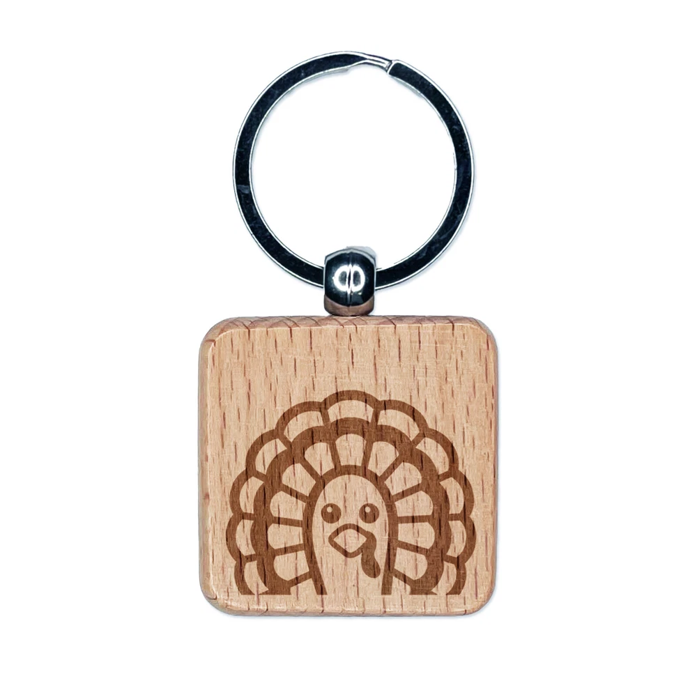Peeking Turkey Thanksgiving Engraved Wood Square Keychain Tag Charm