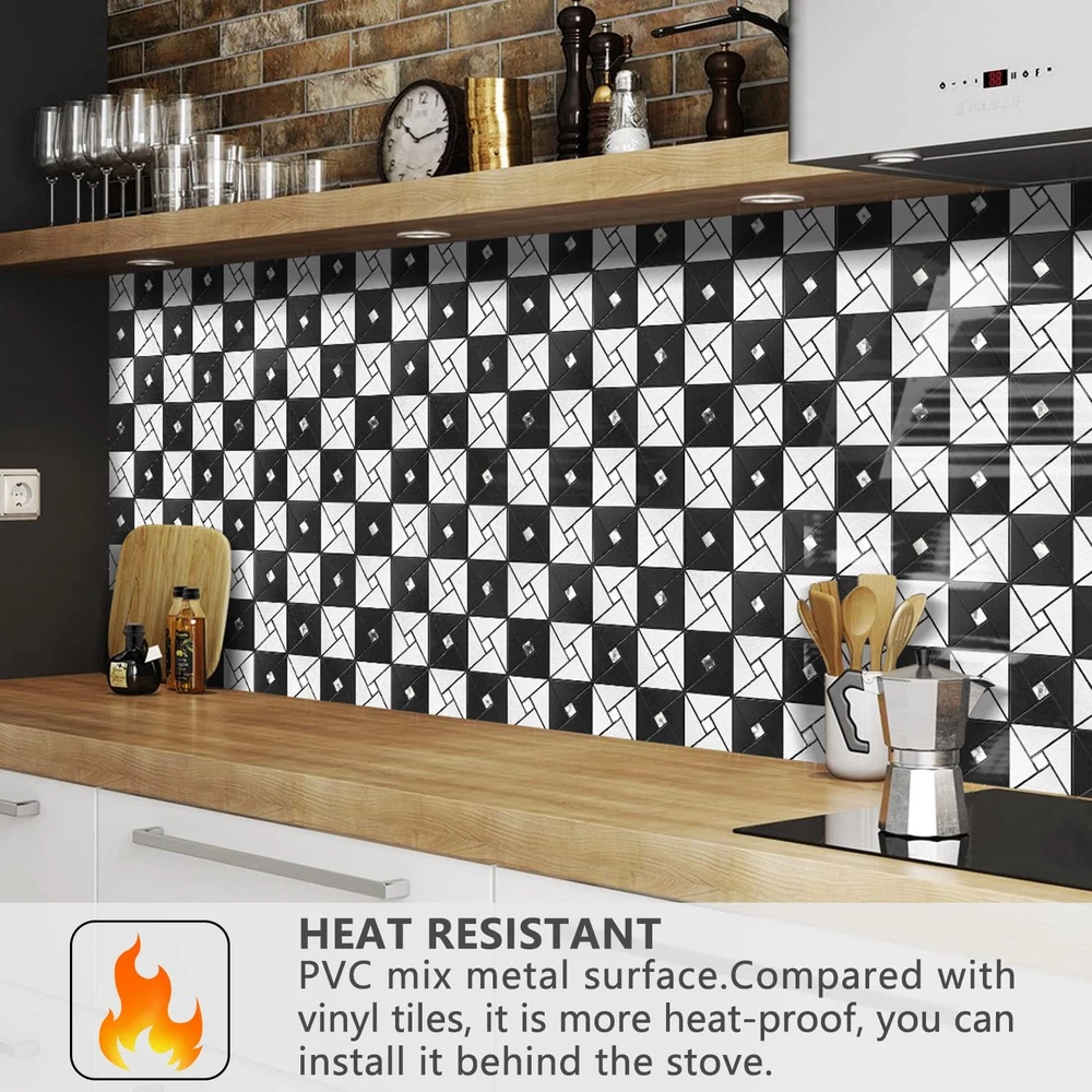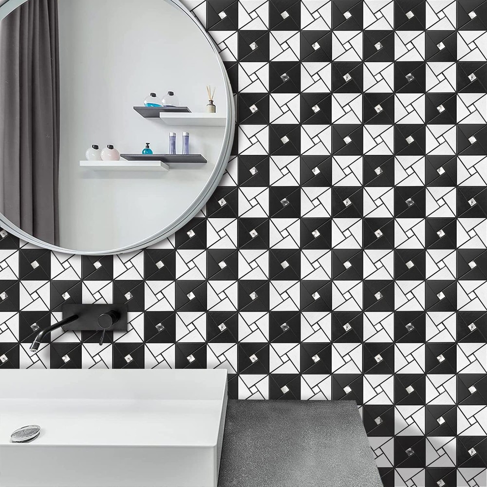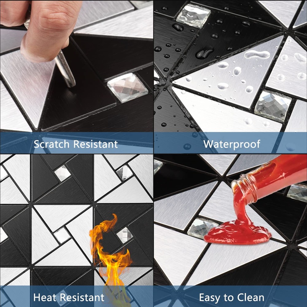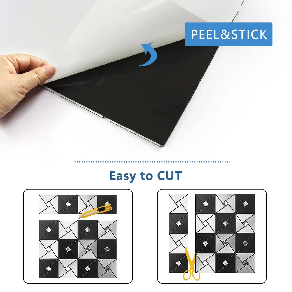 peel and stick backsplash kitchen backsplash tiles peel and stick miscasa wallpaper wall paper sticker pull and stick sink remodel staircase retro drawer craft project pu farmhouse ceramic wall tile peel and stick backsplash kitchen sheet stickers metal tiles ✿PINWHEEL PATTERN TILE:10 Sheets high quality black&silver peel and stick backsplash, 12"x12"x0.12" each,cover about 10 square feet. This square peel and stick backsplash makes installation easier and reduces cutting waste. Bright triangular cut metal and glass designs combine to make your overall home look brighter and more spacious. ✿HIGH QUALITY WALL TILE:Glass and Metal peel and stick tile made of aluminum and PVC composite laminates, safe and environmentally friendly, scratch resistant, high impact, colorfast. Thicker than regular vinyl peel stick backsplash tile for kitchen and more durable than plastic self-adhesive tile. ✿MOISTURE AND HEAT RESISTANT:The metal kitchen backsplash tiles peel and stick are durable, water, oil and heat resistant, keep walls free from splashes and oil, and can be wiped easily even with stains. ✿DIY DESIGN:Just peel and stick, no deformation, no peeling, no need for extra glue, you can easily cut the peel and stick backsplash for kitchen with a sharp cutting knife, and you are free to create a high-end look yourself. ✿WIDELY USED:This metal peel and stick tile backsplash can be used for walls in kitchens, bathrooms, stove backsplashes, bedroom wall backsplashes, laundry rooms, furniture decor, fireplace decor, washbasins, pet rooms, and more.
