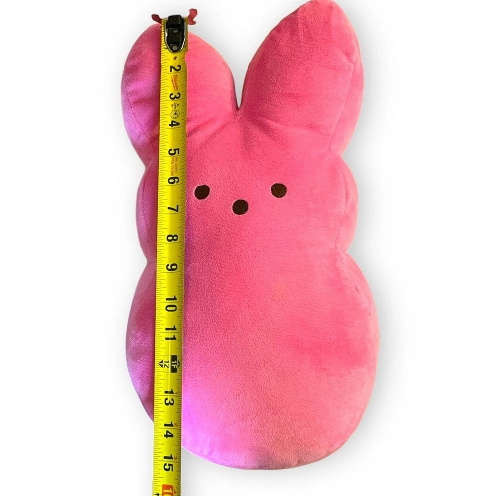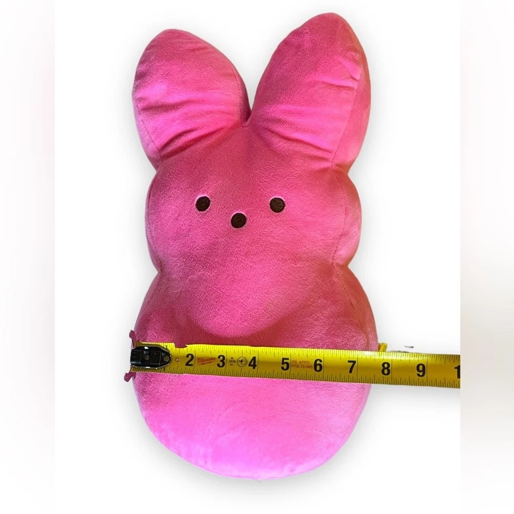 Peeps Stuffed Animal Pink Stuffed Bunny 2015 Pillow Plush Lovey Easter 15” Squish this lovable stuffed peep bunny and fall in love with this classic Easter novelty item. Peeps are an edible Easter icon and now they are a collectible stuffed toy too. This peep is in good preowned condition. Some of the threads on the seam of the ear were coming loose, so we added a few stitches. Please see photos. Also Note: the plastic hallmark logo button on the back wore down when it was washed and dried. Otherwise, it is in great condition and ready to go to its new loving home. Dimensions: 15.5”x 7.5”