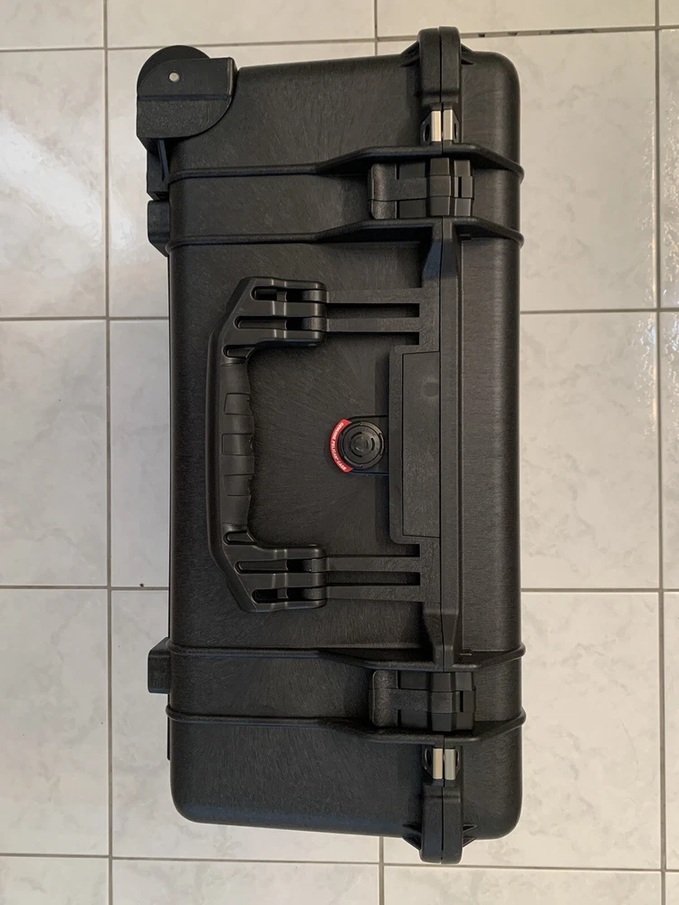 Keep your valuable camera equipment safe and secure with this Pelican 1560 Hard Case. Made from rigid plastic material, this black case is water-resistant and comes with wheels for easy transport. The case is designed to fit a camera and features additional compartments to store accessories. Ideal for photographers and videographers, this Pelican Hard Case is an essential accessory for anyone who needs to transport their equipment safely. With its sturdy construction and convenient features, this case provides peace of mind knowing that your camera gear is protected during travel.