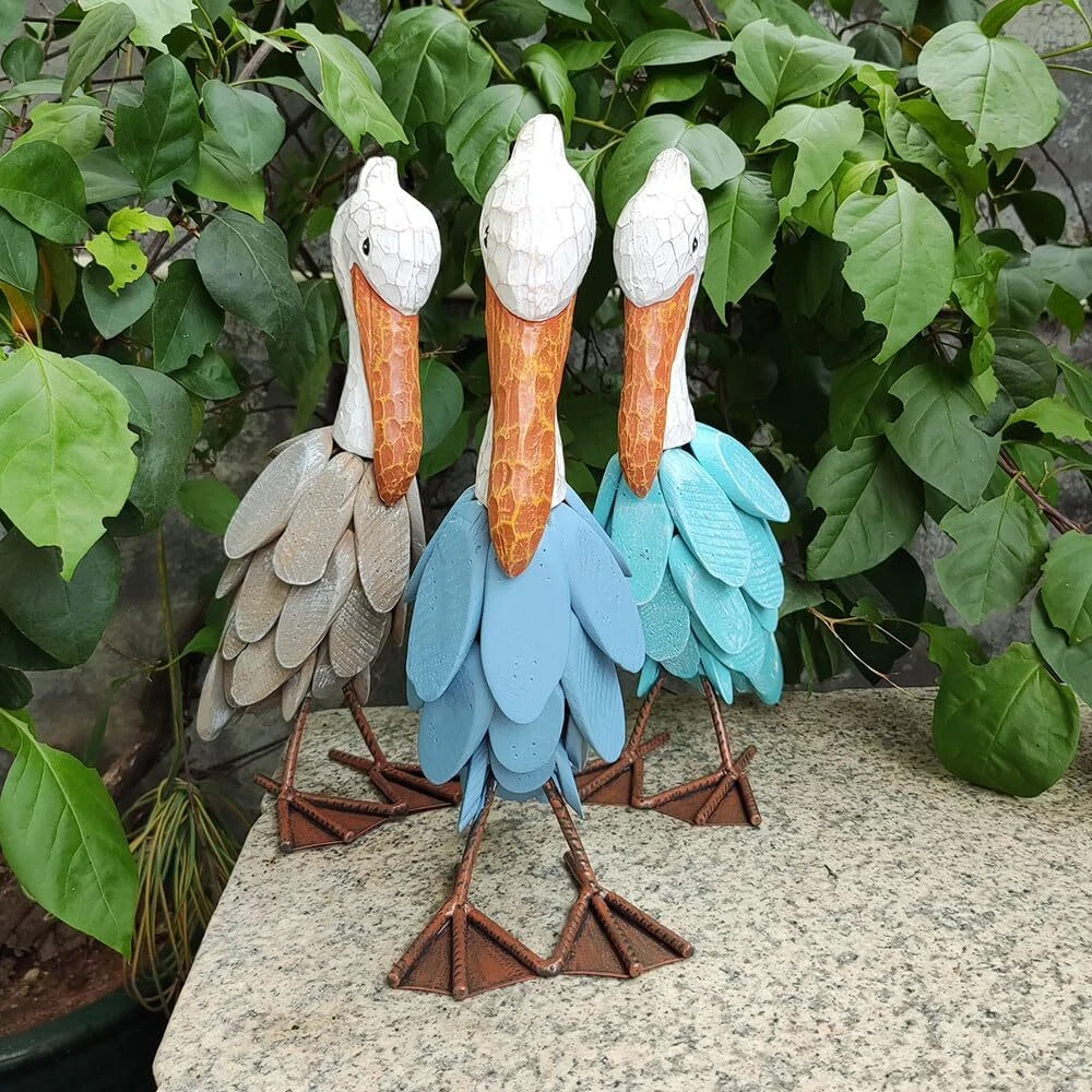 These decorative bird garden statues feature artisan craftmanship like no other, with natural variations of light to dark blue paint colors to emulate a weathered look; these realistic garden figures are perfect for display in your living room, yard, lawn, garden, backyard, patio, or front porch area Outdoor statue features intricate details on the sculpture, and electrifying colors add a bold statement to your patio or garden Bird statues are supported by metal brackets, and their bodies are made of wood clips Outdoor bird statue for garden looks nice in flower bed and add a lot of color to your yard. Stand stably. Perfect for indoor or outdoor displays in living room, mantle, garden, flower bed, pool, porch, pond, patio, lawn, yard Statue measures 6.5"L x 4.5"W x 11.5"H,