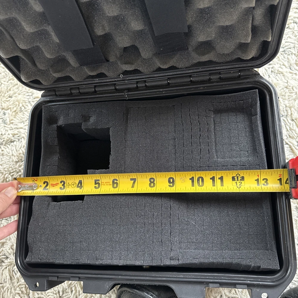 This Pelican Storm case is a beast—rugged and protective, perfect for keeping gear safe. The hard foam held drone parts snug, but I swapped in soft foam for my camera setup before changing my mind. Though scuffed from use, it's clearly built to last, with solid latches and a tough exterior. The rough outer size fits more than expected, and the waterproof seal is a huge plus. Great find for anyone needing serious protection on the go!